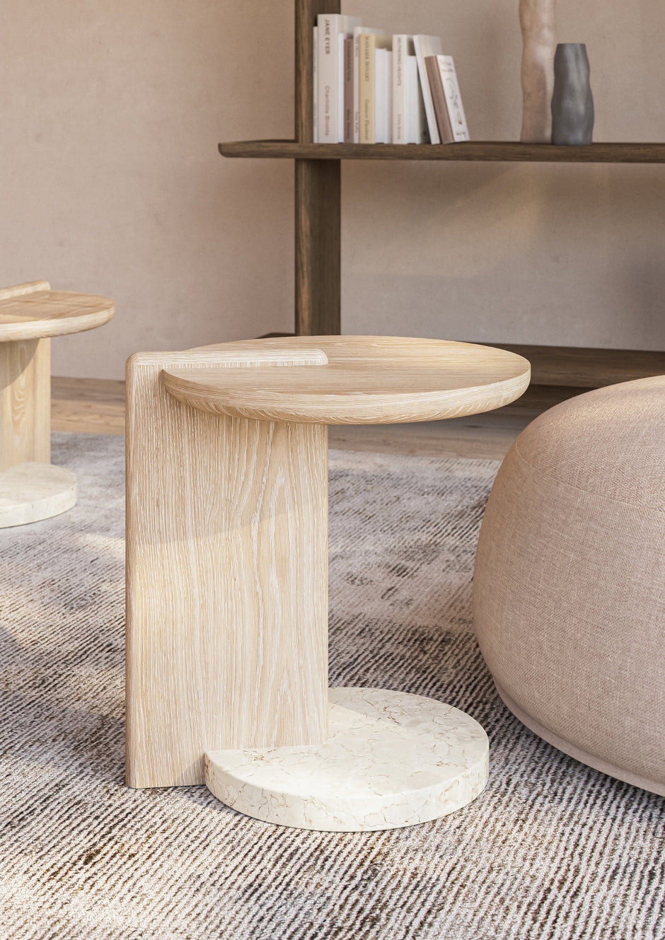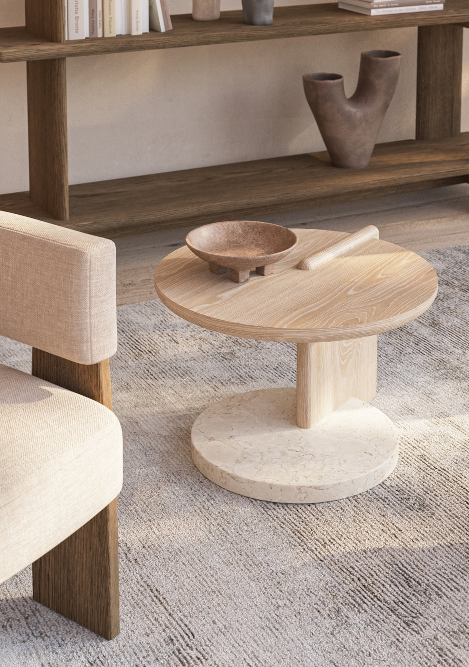 Leo Small Coffee Table - Oak End Grain - Creme Marble