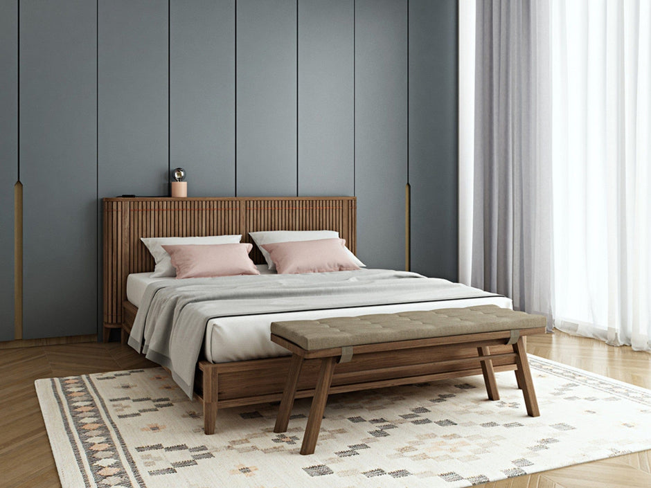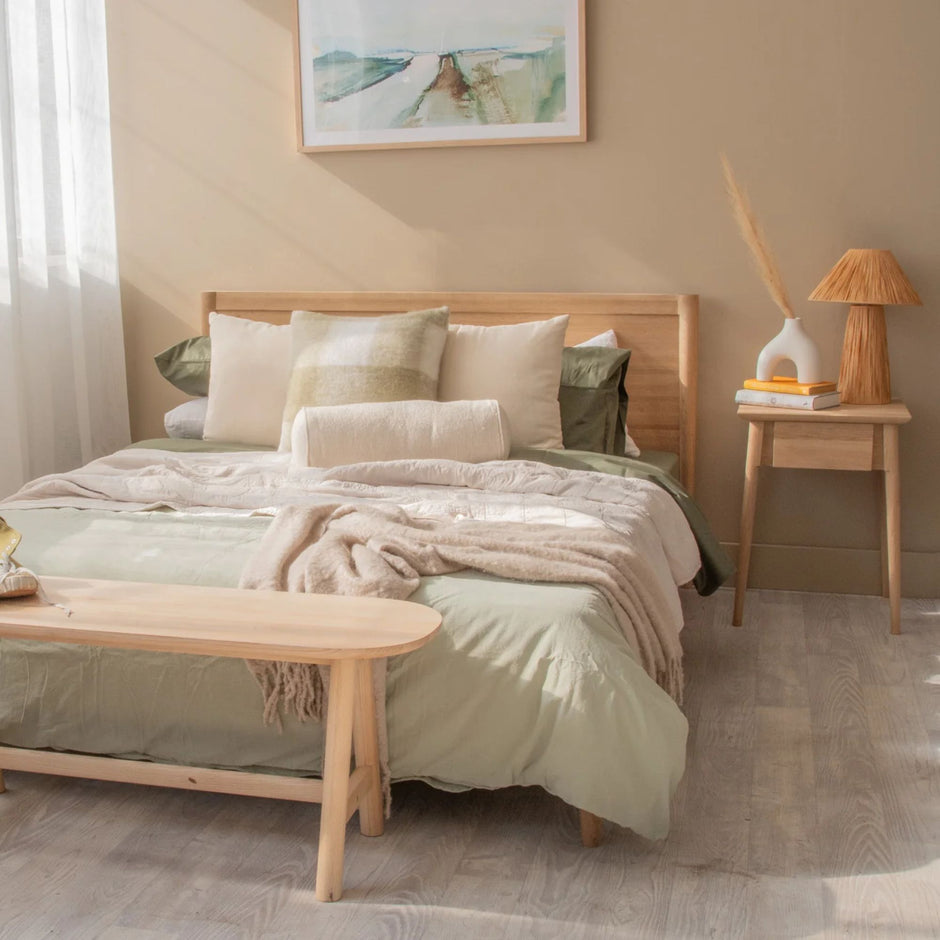 Circa Queen Bed without Storage - European White oak and fabric Headboard