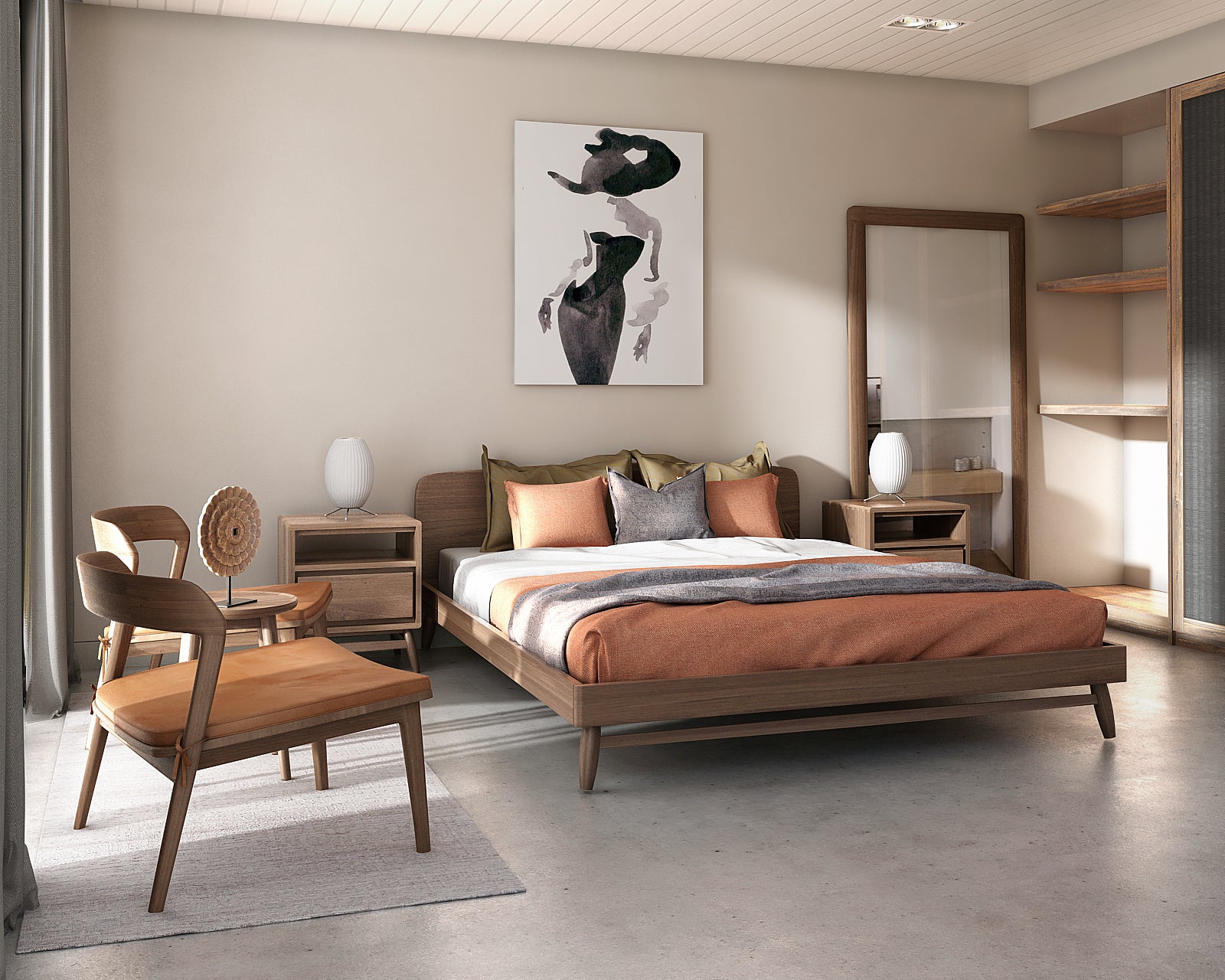 Enhance your bedroom with the Karpenter Twist Queen Bed, expertly crafted from FSC-certified recycled Teak. Known for its rich, warm tones and natural grain, this sustainable timber brings a sophisticated touch to any modern or contemporary bedroom. Featuring a contemporary low-profile design with soft, rounded edges, tapered legs, and a cross brace, the Twist bed offers a light, airy aesthetic that creates a tranquil and stylish atmosphere. The Twist bed design suits modern and contemporary interior styles. Whether you're outfitting a minimalist bedroom, an urban loft, or a relaxed, coastal-inspired retreat, this bed’s sophisticated design and sustainable materials blend seamlessly with a variety of decor themes.
