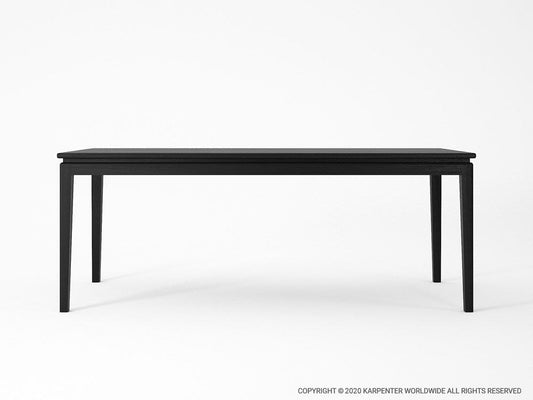 The Twenty Twenty table range incorporates rounded edging and carpentry routing to give the impression of a floating tabletop on the leg frame. The fine tapering of the leg is subtle and visually appealing. The Twenty Twenty table range comes in a variety of table sizes and is available in solid FSC accredited Recycled Teak, European Oak, and European Oak in low sheen Satin Black finish. The tabletops are coated with Sayer lack a water based finish. Any spillages are recommended to be addressed immediately for hot drinks & foods we recommend the use of placemats and coasters. Clean Contemporary Design features.