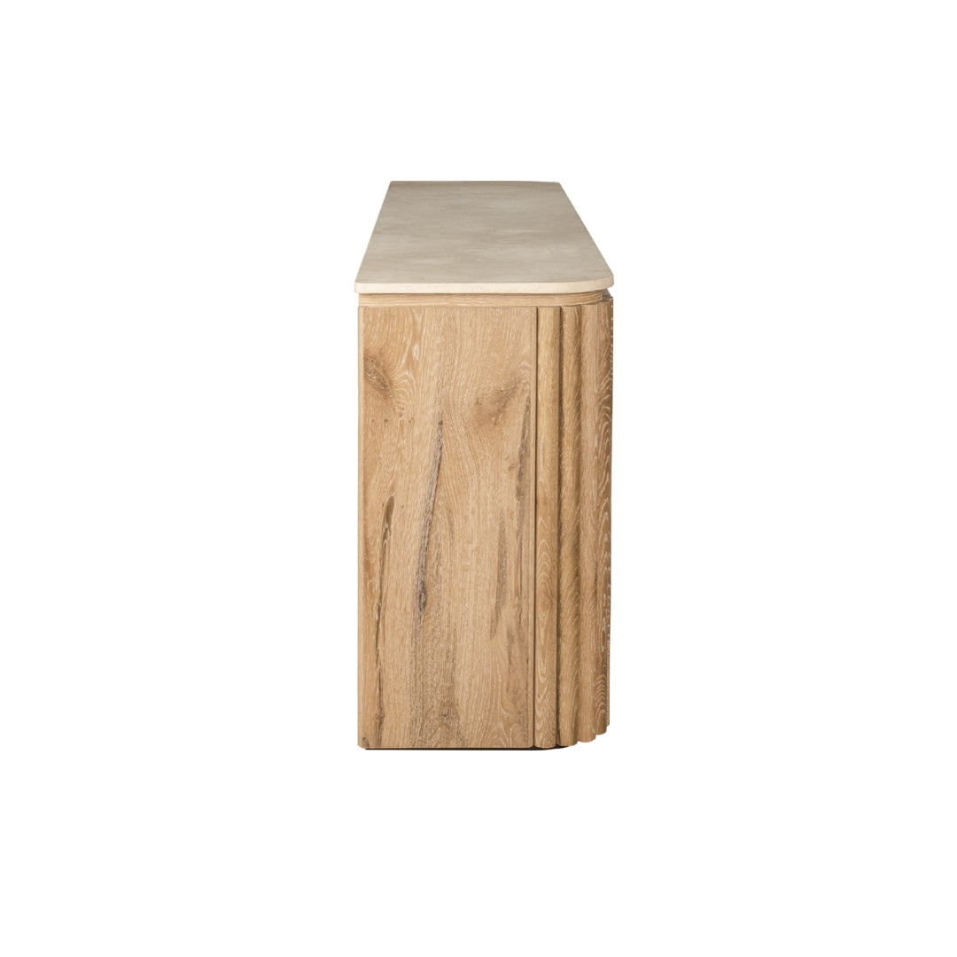 Topped with smooth, matte cream marble, it embodies quiet sophistication, bringing timeless elegance to any modern interior. Its flowing curves and elegant details bring a sense of lightness and refined artistry to any interior.