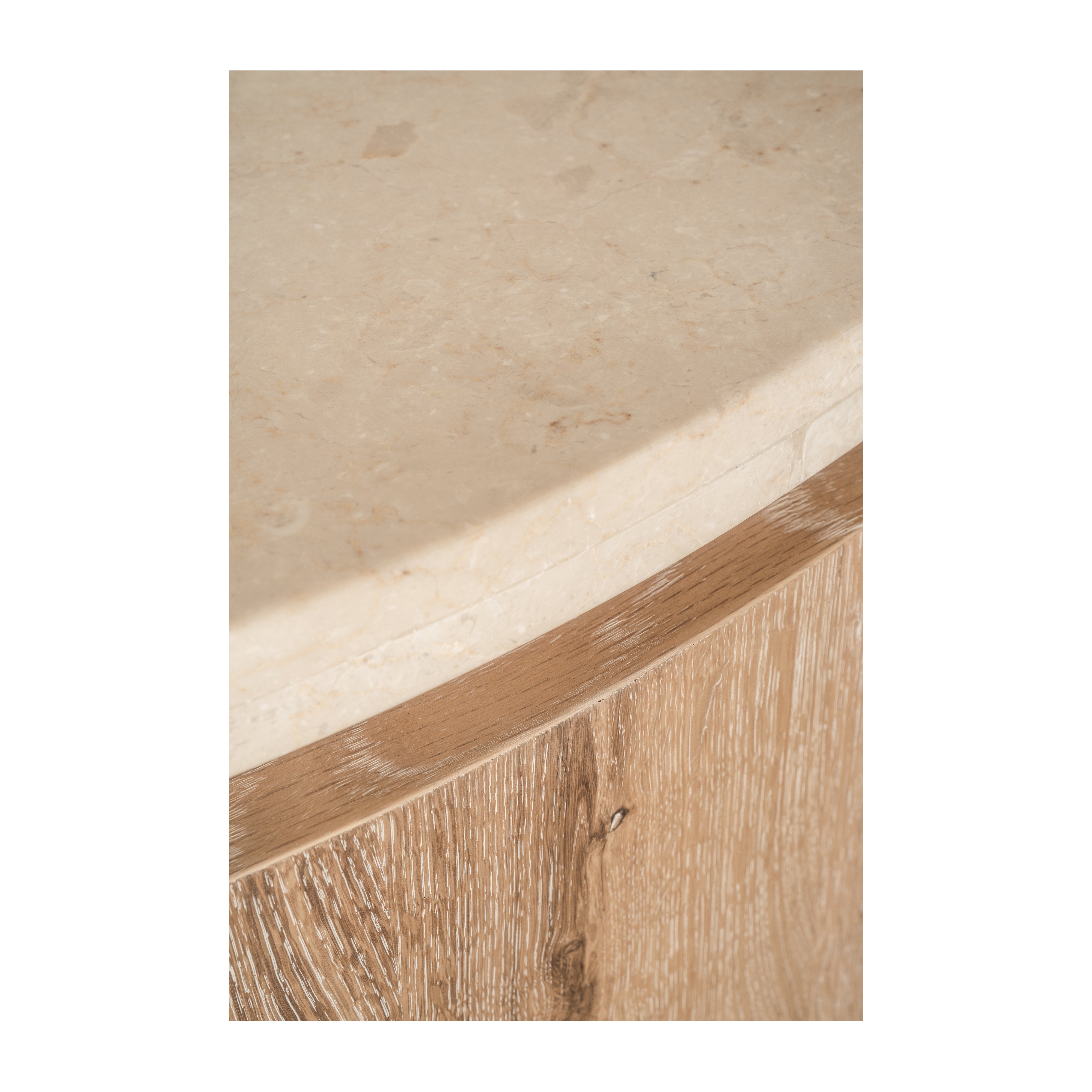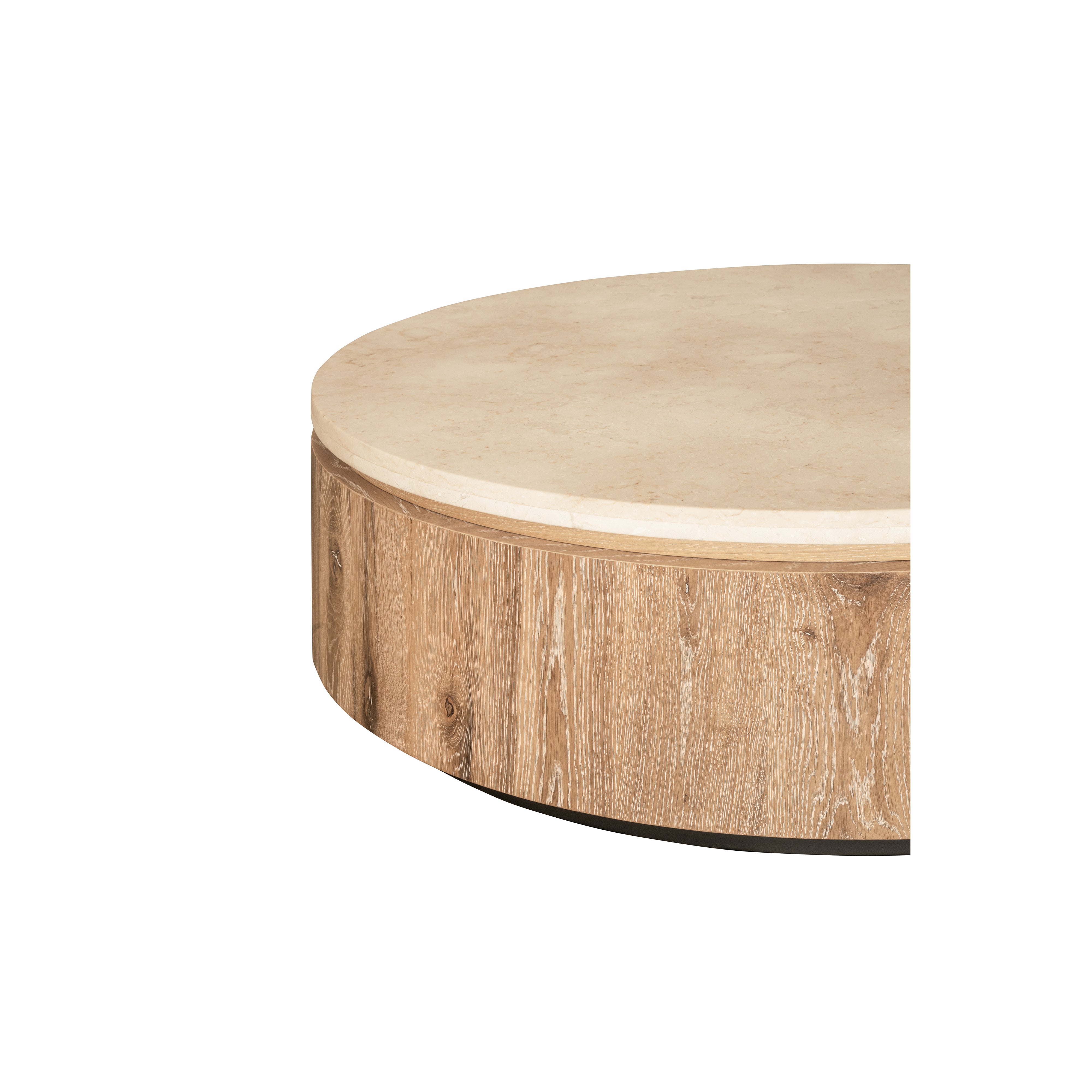 The Canyon Coffee Table features a cylindrical Old Oak base paired with a gently floating marble top, offering a harmonious blend of structure and elegance. Its clean, architectural silhouette is softened by the natural timber grain, adding warmth and texture to contemporary living spaces.