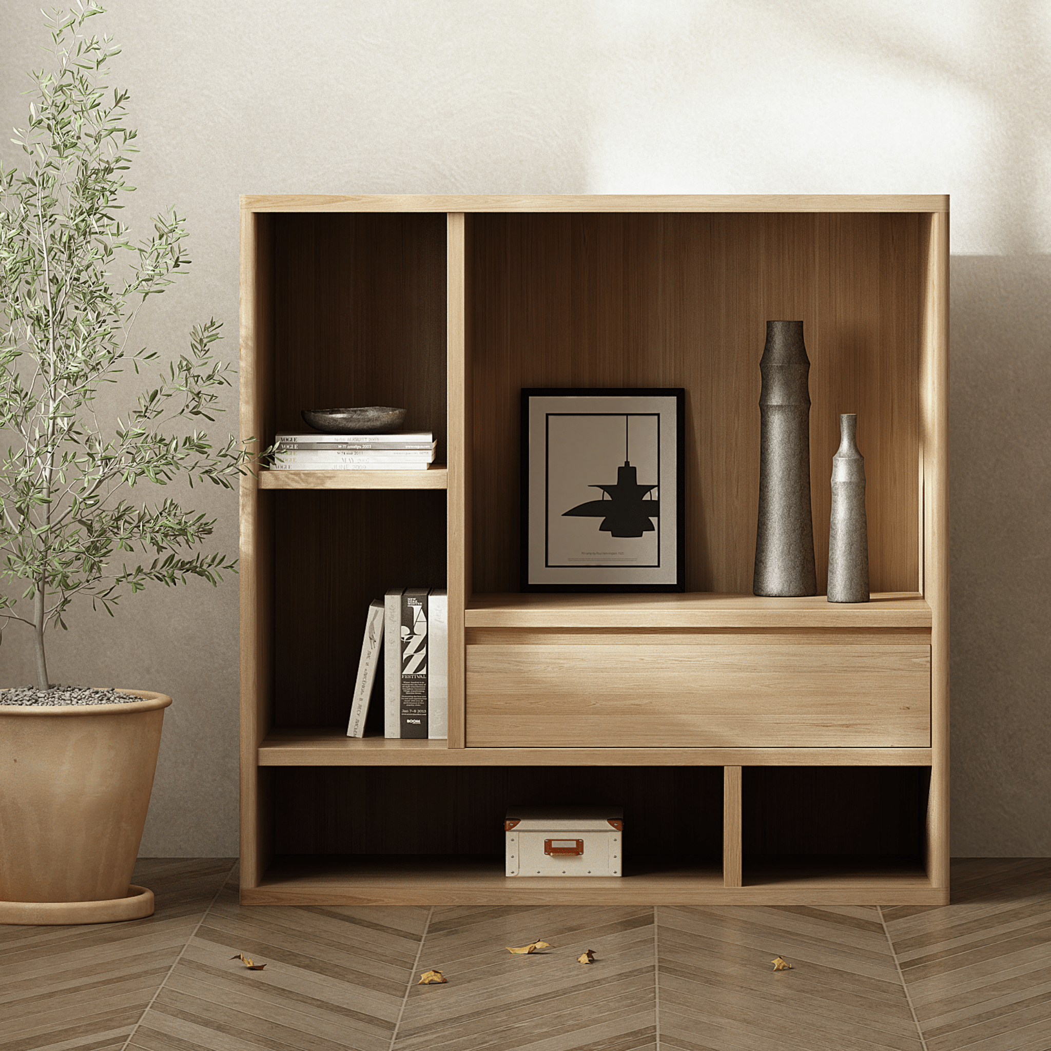 The modern and contemporary Circa Cupboard from Karpenter combines current and sophisticated design with exquisite craftsmanship. Made with luxurious solid European White Oak this gorgeous and helpful storage piece comes with variable nooks in different shapes and sizes that can house all sorts of your lovely possessions. As an extra feature, a soft closing drawer is a wonderful additional detail that can be used to stash things. This wonderful sideboard is not only a beautiful and handy resource but it has been sustainably harvested.