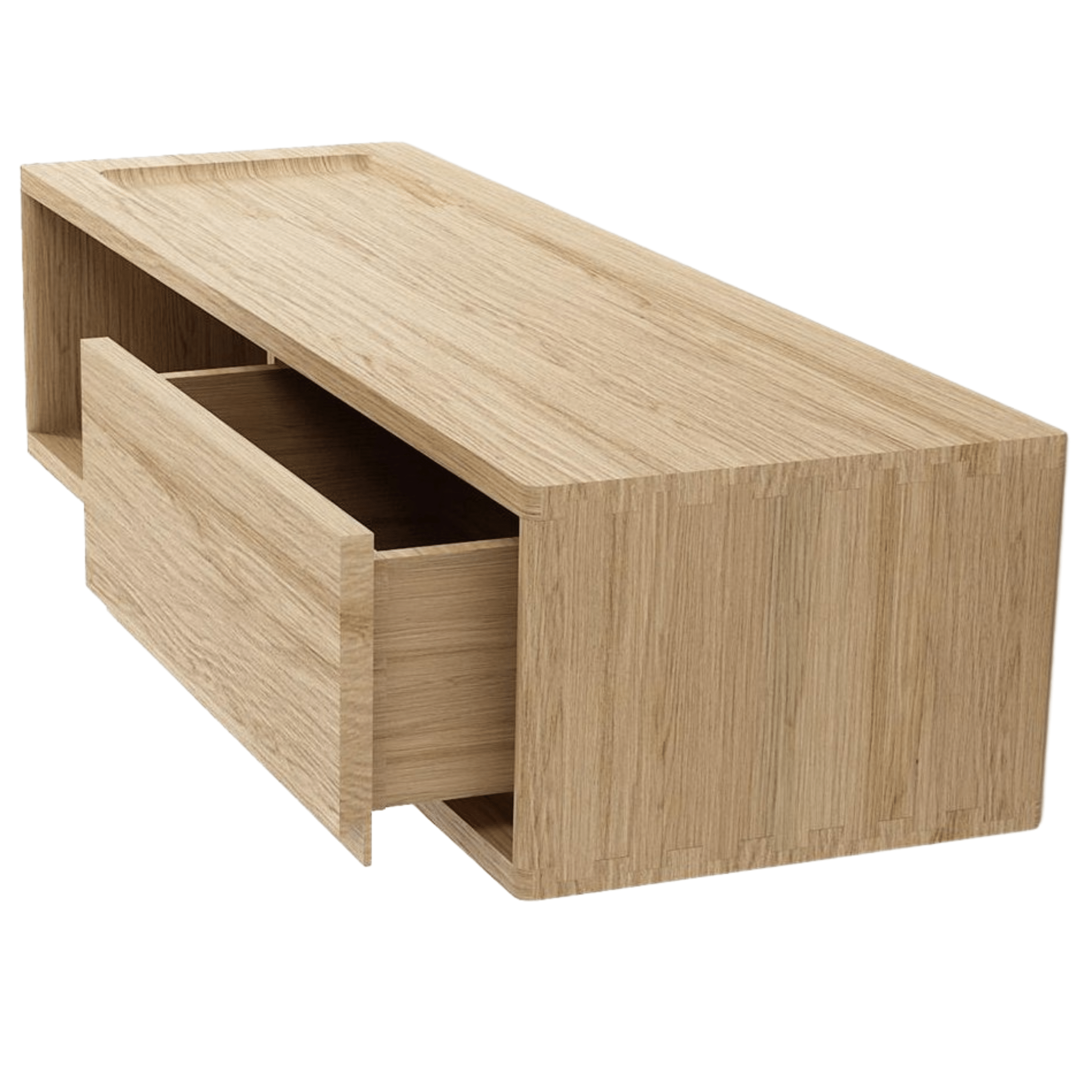 The modern and contemporary Circa Storage Box from Karpenter combines current and sophisticated design with exquisite craftsmanship. Made with luxurious solid European White Oak this gorgeous and helpful storage piece can be used as an elevated shelf or bedside table. Complete with a self-closing drawer and a handy void its versatility means you can use this as a discreet, handy, aesthetic space. This piece like all the others in the Karpenter range is sourced from sustainably harvested timber.