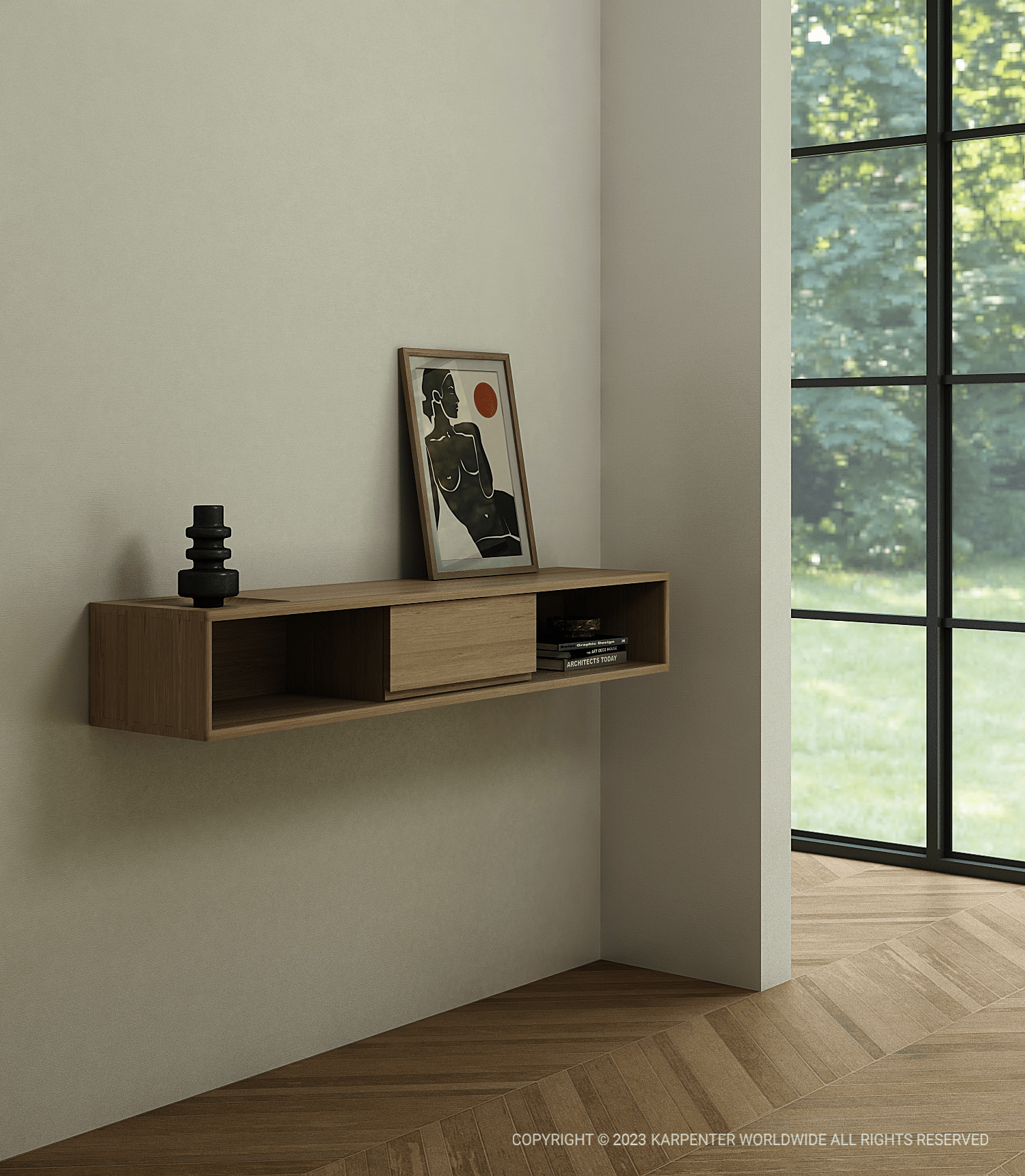 The modern and contemporary Circa Storage Box from Karpenter combines current and sophisticated design with exquisite craftsmanship. Made with luxurious solid European White Oak this gorgeous and helpful storage piece can be used as an elevated shelf or bedside table. Complete with a central self-closing drawer and 2 voids either side, its versatility means you can use this as a discreet, handy, aesthetic space. This piece like all the others in the Karpenter range is sourced from sustainably harvested timber.