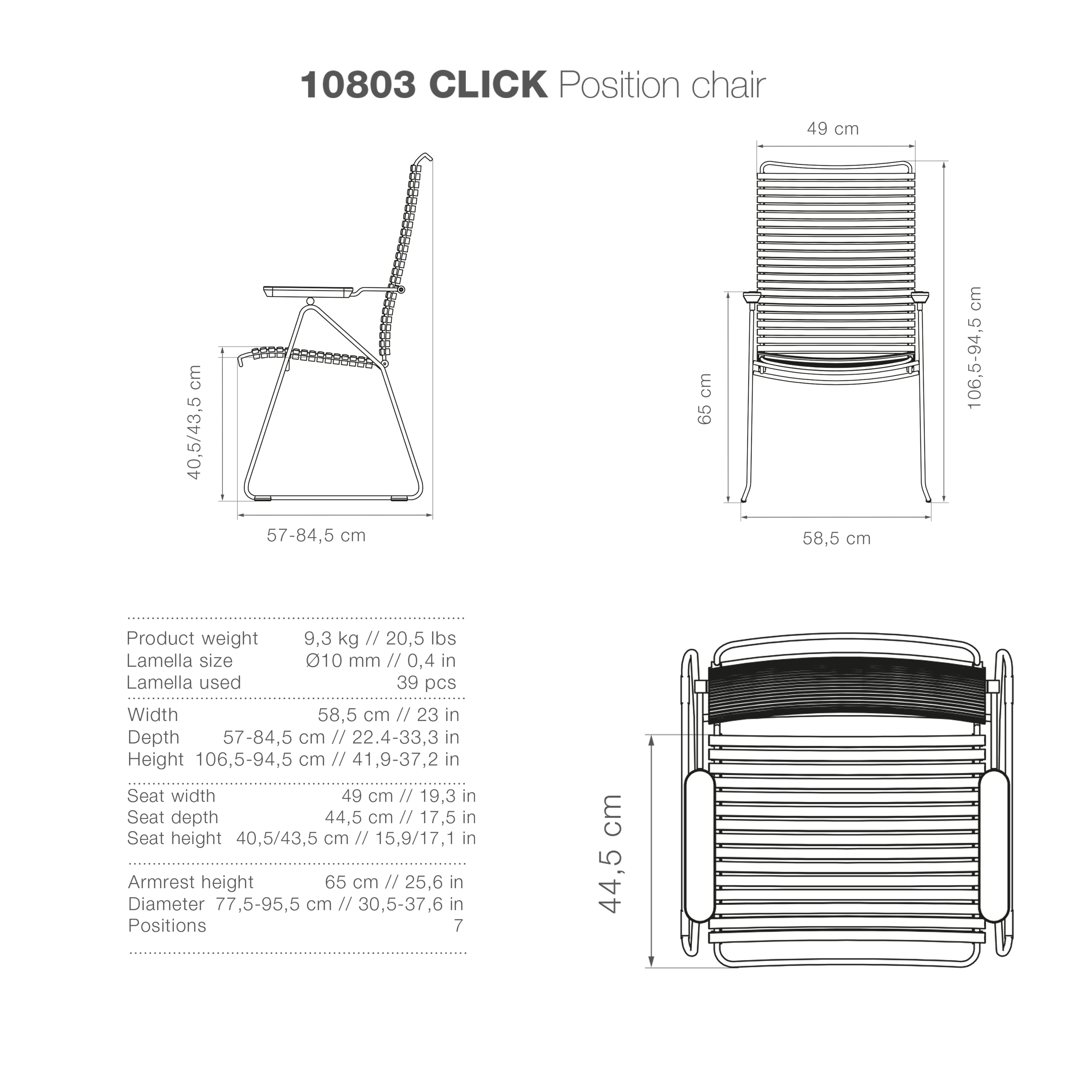Click Position chair with adjustable backrest is made for all of us who just want to sit comfortably. Click position chair has seven positions The first is more upright than the dining chair, giving you extra support while dining.
