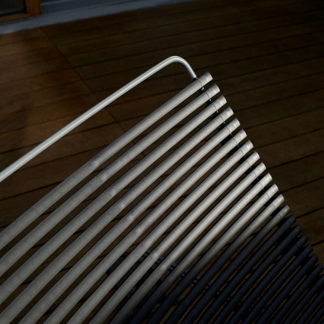 The powder-coated steel frame ensures long-term durability, while bamboo armrests add a warm, natural contrast to the minimalist form. Light enough to reposition as the sun moves, this chaise invites you to slow down, settle in, and enjoy refined comfort through thoughtful, functional design.