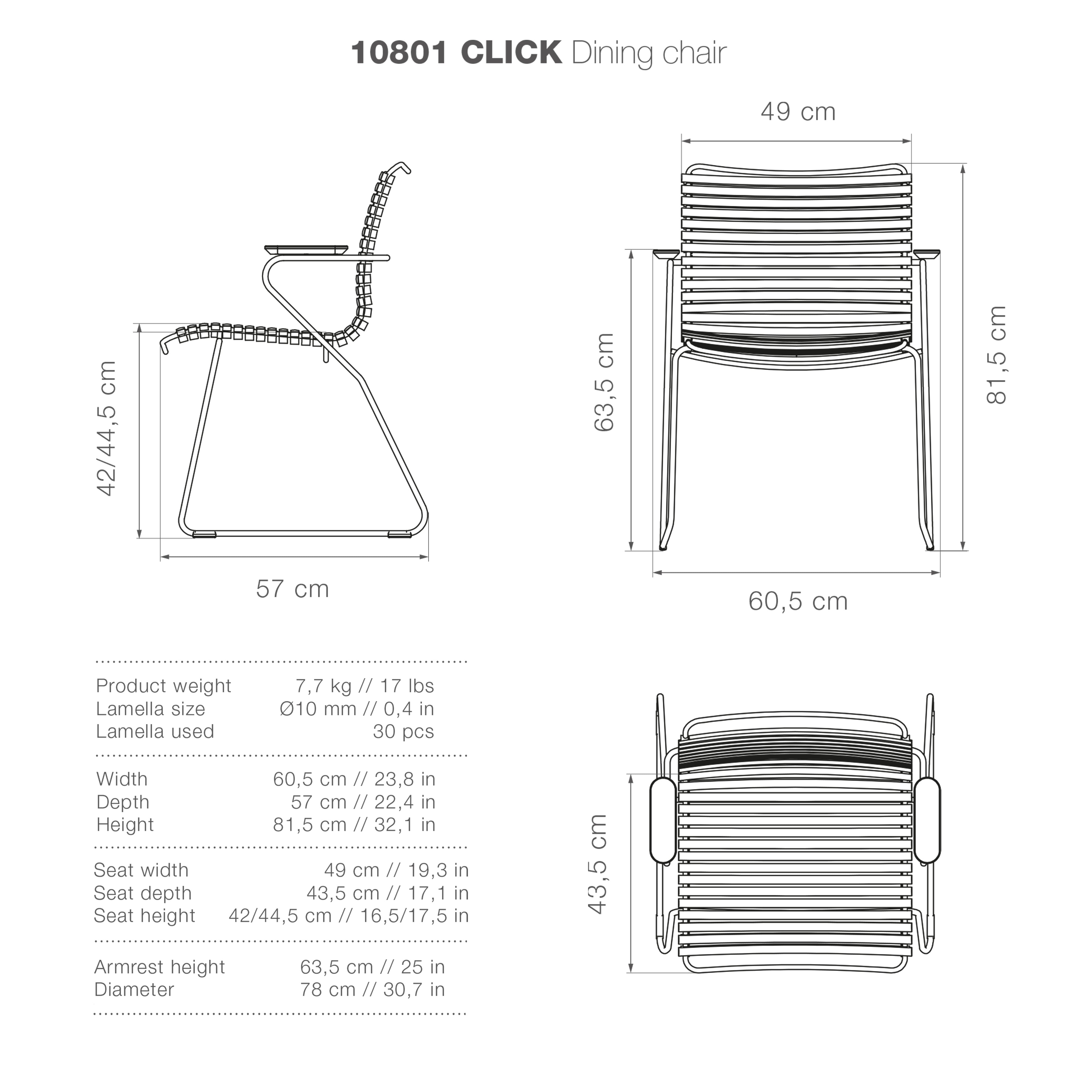 Click Dining chair Click chair is simple, honest and ergonomically well thought out It is beautiful in its repetition around the table and because the lamellas can be replaced, you can mix and change the colours as often as you like.