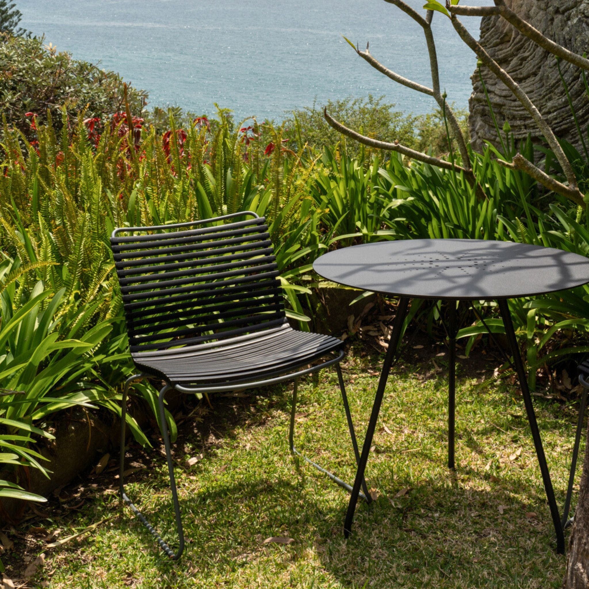 The Click Dining Chair is a modern outdoor dining chair that combines Scandinavian design with everyday comfort. Its clean lines and gently curved seat are ergonomically designed to provide excellent support, while the powder-coated steel frame ensures long-lasting durability outdoors.