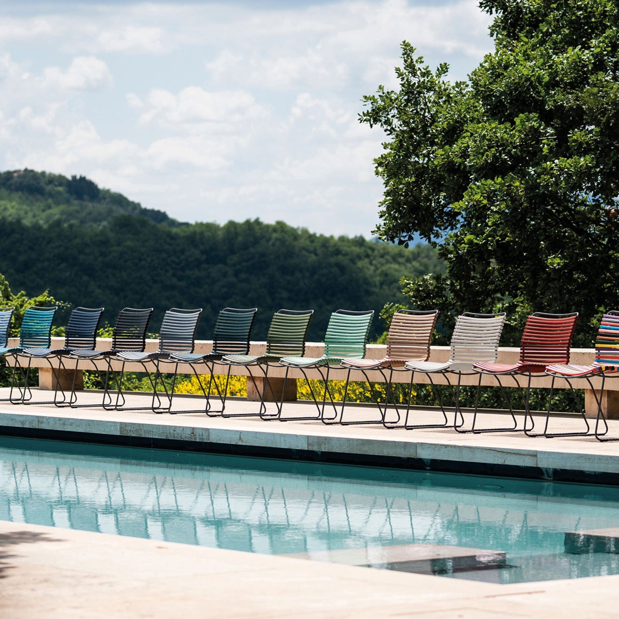 The lamellas can be replaced, meaning your CLICK chair is long-lasting and can be personalised by mixing and matching colours to suit your style. The CLICK dining chairs are also stackable, a smart, space-saving solution for balconies, patios or compact dining areas. Stylish, practical and built to last, the CLICK chair brings effortless design and functionality to outdoor dining.