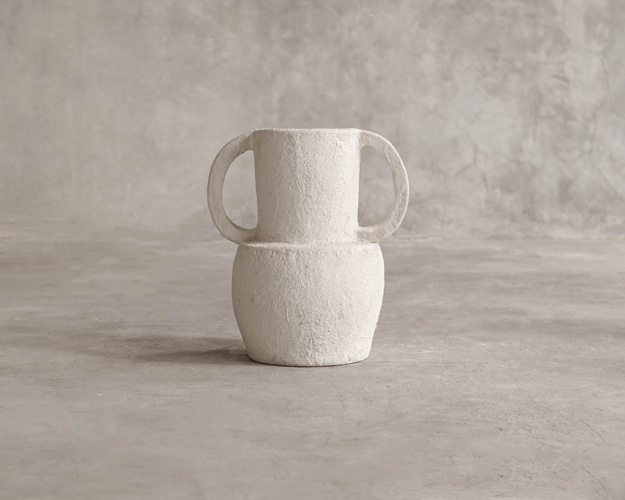 The Hestia Vase is a perfect match for decor styles that emphasize natural elements and sustainable living, such as rustic, bohemian, and Mediterranean themes. Its ancient aesthetic harmonizes beautifully with interiors that showcase organic materials and earthy colors. It can be displayed individually for a subtle yet refined look or grouped with other vases from the collection to create a compelling organic arrangement. This flexibility makes it ideal for enhancing any indoor space with a touch of time-honored elegance.