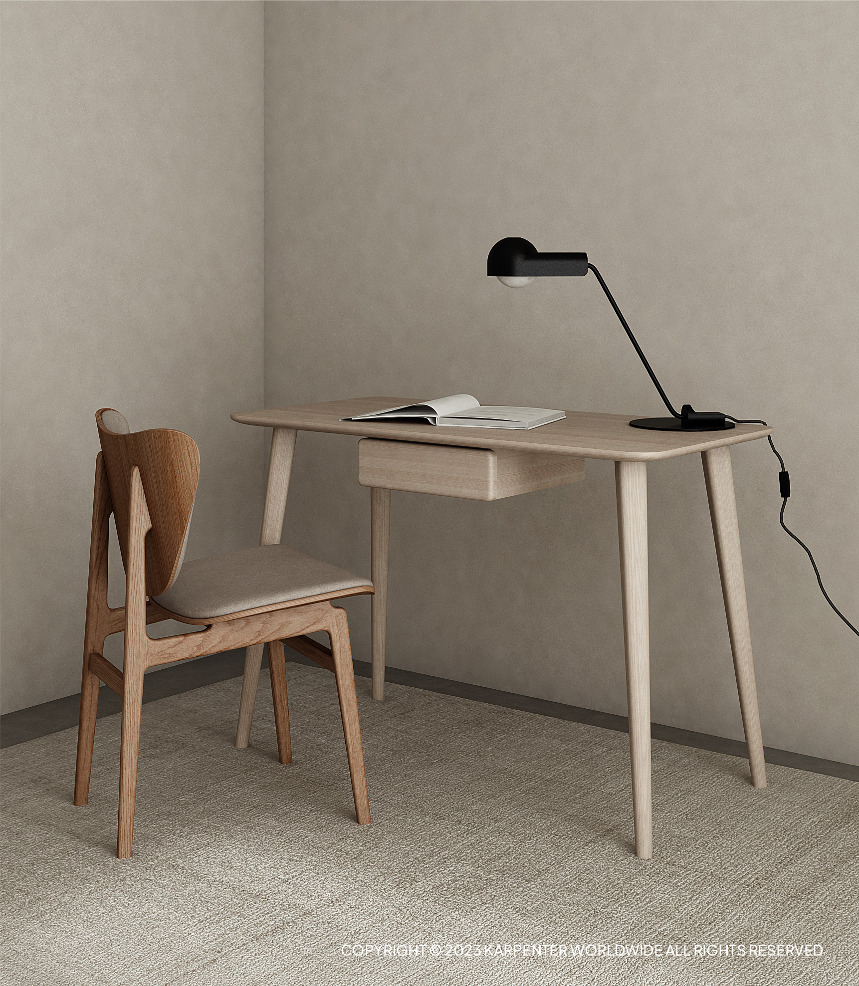 Feel the simplicity in your working area, we present Domani office desk in European White Oak. The combination of curve and straight lines is notable.