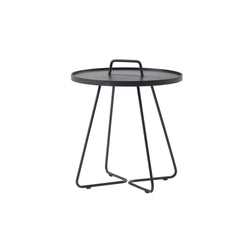 Edge coffee table with a half Circle handle as a decorative feature that makes the table easy to move from room to room - or from outdoor to indoor. Edge comes in 3 different sizes.