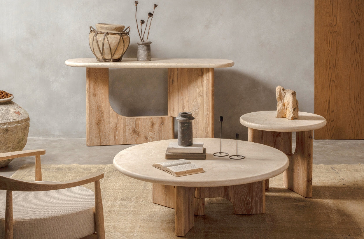 Guided by the refined simplicity of nature, this collection merges sculptural design with contemporary balance. The Floema Coffee Table showcases a refined marble top elevated by three asymmetrical legs.