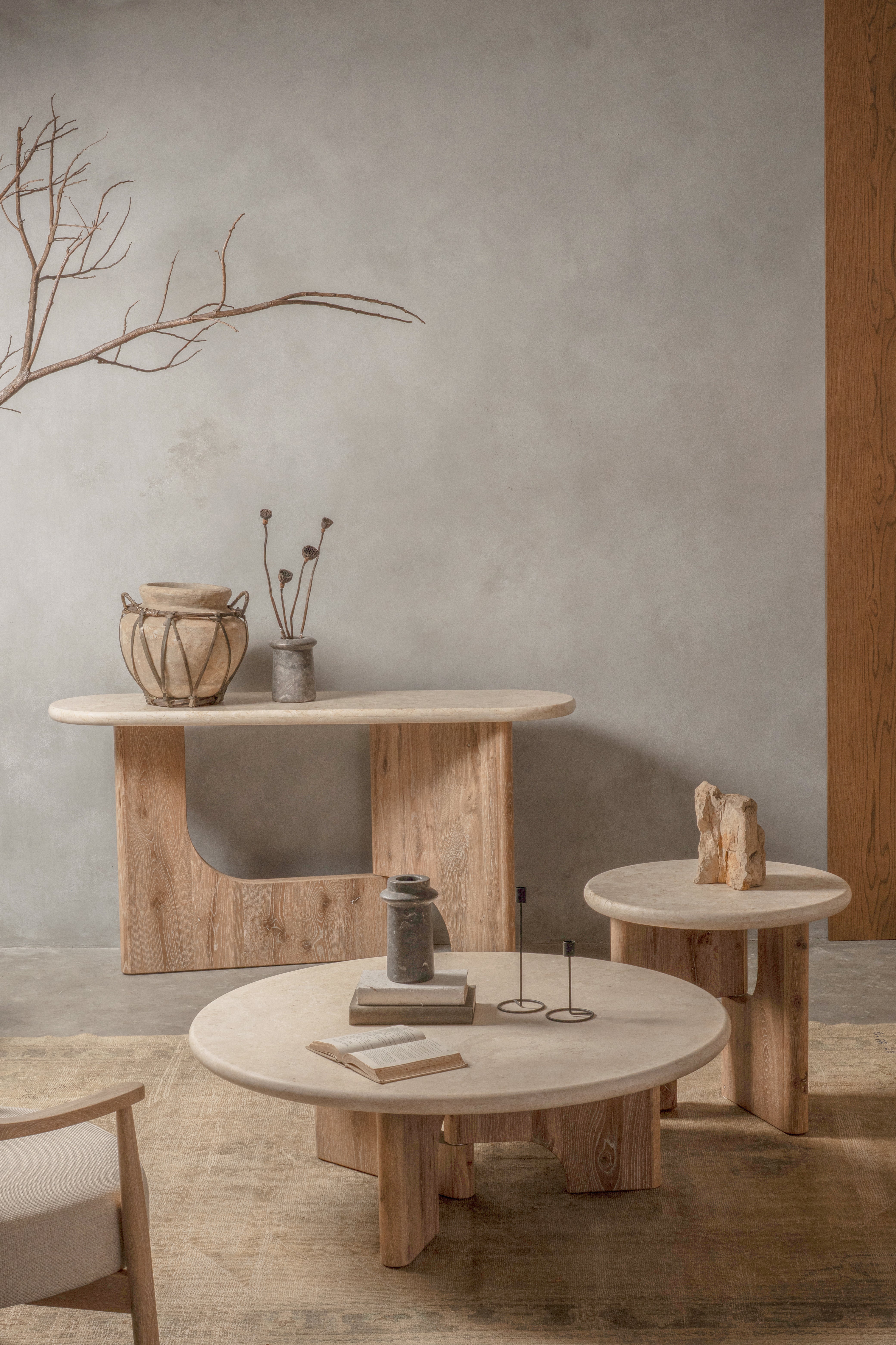 Its thoughtful design allows it to stand confidently on its own or pair seamlessly with the rest of the collection. The smooth marble top adds a touch of natural refinement, bringing a gentle sense of warmth and charm to any room. With its naturally inspired form and modern clarity, the collection elevates interiors with quiet luxury.