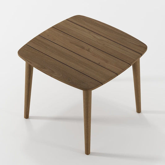 A 90cm square outdoor dining table made of teak wood would be a great option for a small patio or backyard. Teak is a durable and weather-resistant wood that is well-suited for outdoor furniture. Its natural oils make it resistant to moisture, rot and insects. A square table can comfortably seat four people, and its small size makes it a great option for tight spaces or for creating an intimate dining experience. This type of table would be perfect for a small family or for a cozy outdoor dining area.