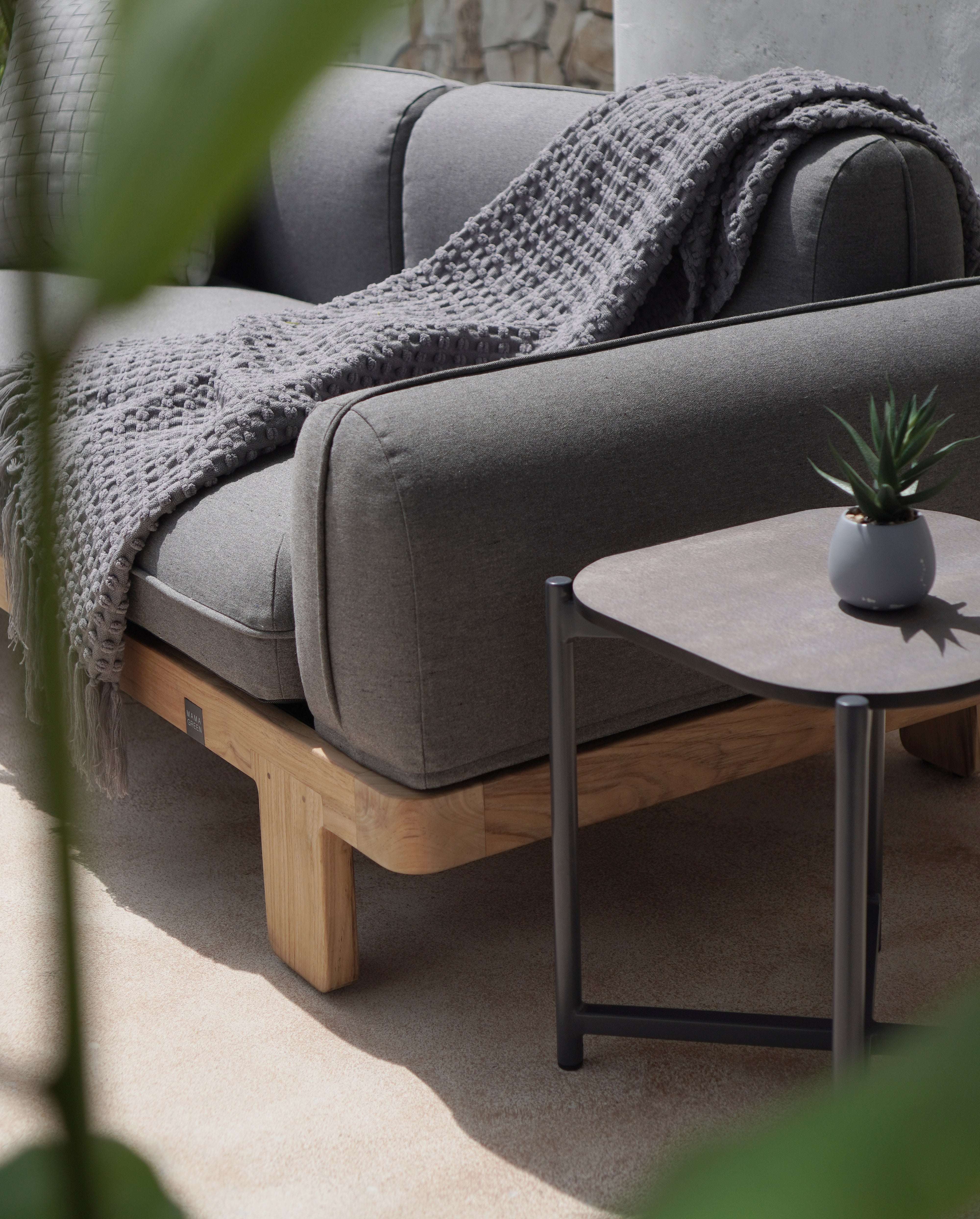 The Hacienda 2-Seater is where contemporary outdoor design meets lasting comfort. Crafted from plantation teak, smooth-sanded and treated with Teak Shield for enhanced durability, it pairs a natural aesthetic with understated luxury. Deep Sunbrella® cushions in Heritage Granite rest on a mesh and webbing base, creating a seating experience that feels both refined and relaxing.