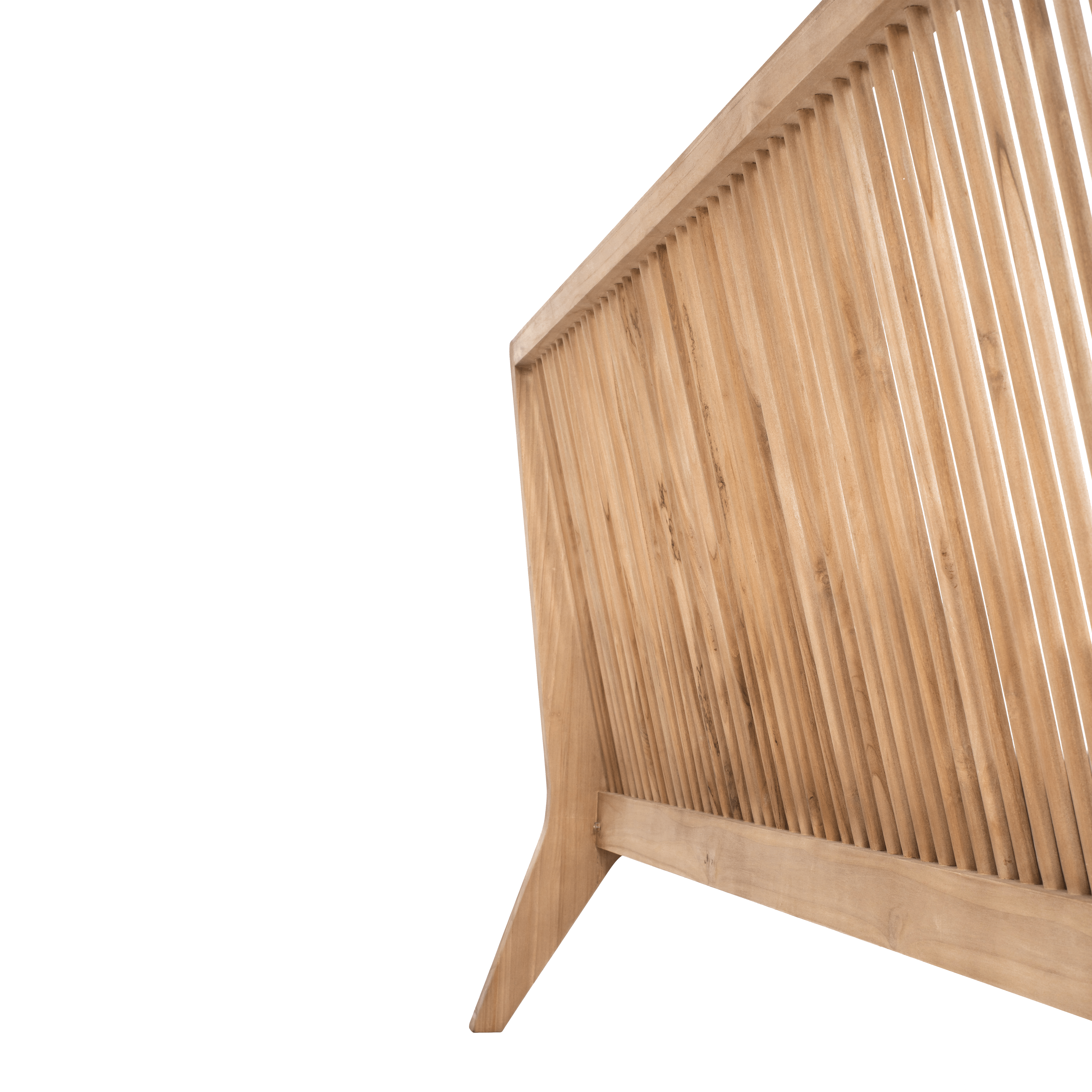 The Spindle King bed is made from sustainable plantation Teak which is sanded smooth allowing the natural oils within the Teak to rise to the surface providing a lustrous natural finish.Â