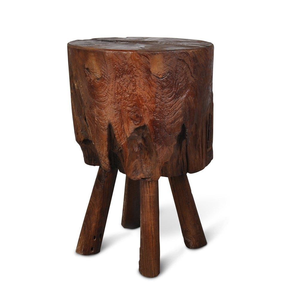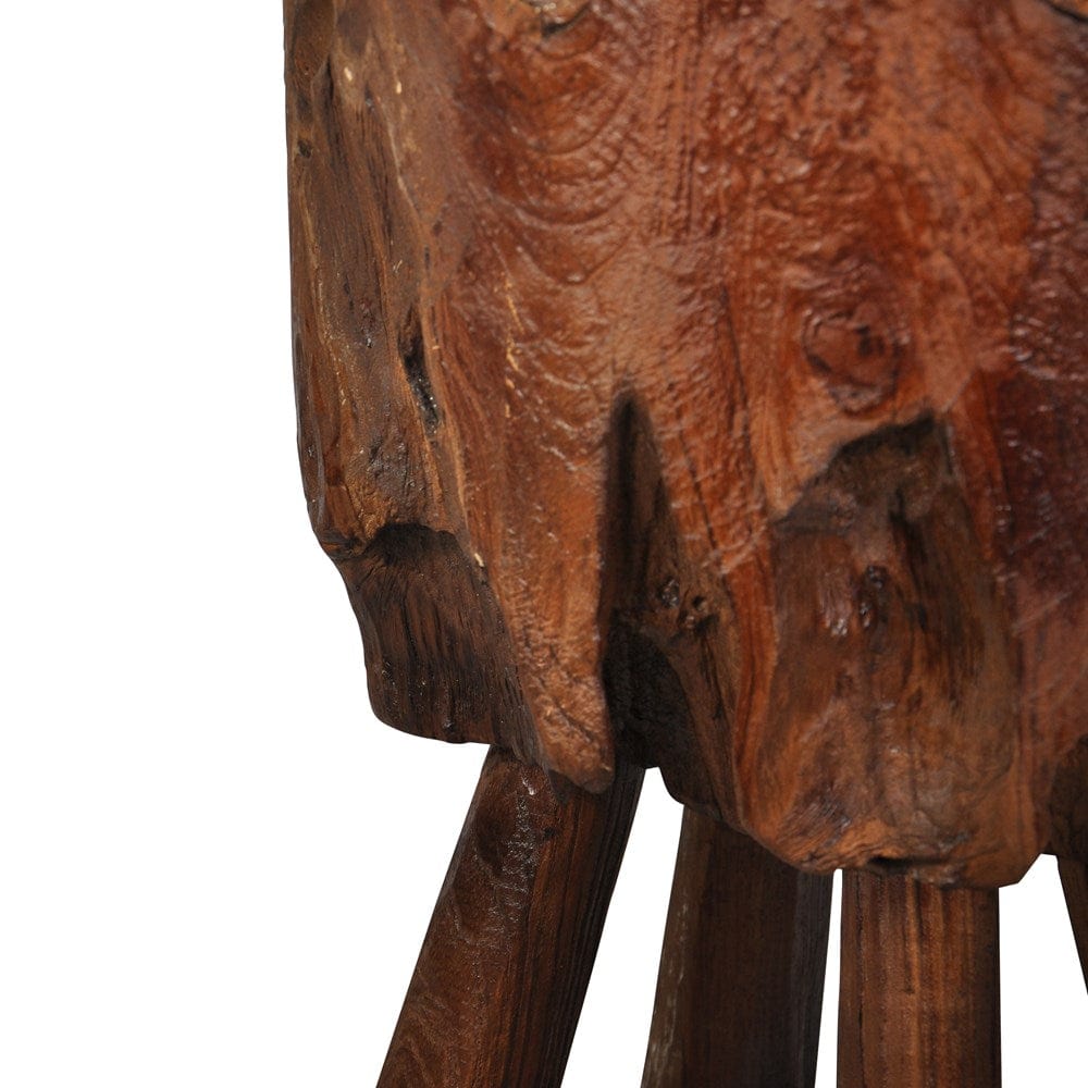 The Kipa stool is made from recycled teak root, and is hand shaped to produce this rustic unique piece. Each piece will differ, and show natural flaws such as knots, burrs and natural indentations. Rather than mask the imperfections, these are displayed like a tattoo or scar. The colour finish is a walnut stain to darken the overall tone. Natural, rustic and individual, the Kipa stool will enhance any room to be the unique show piece- just like you!