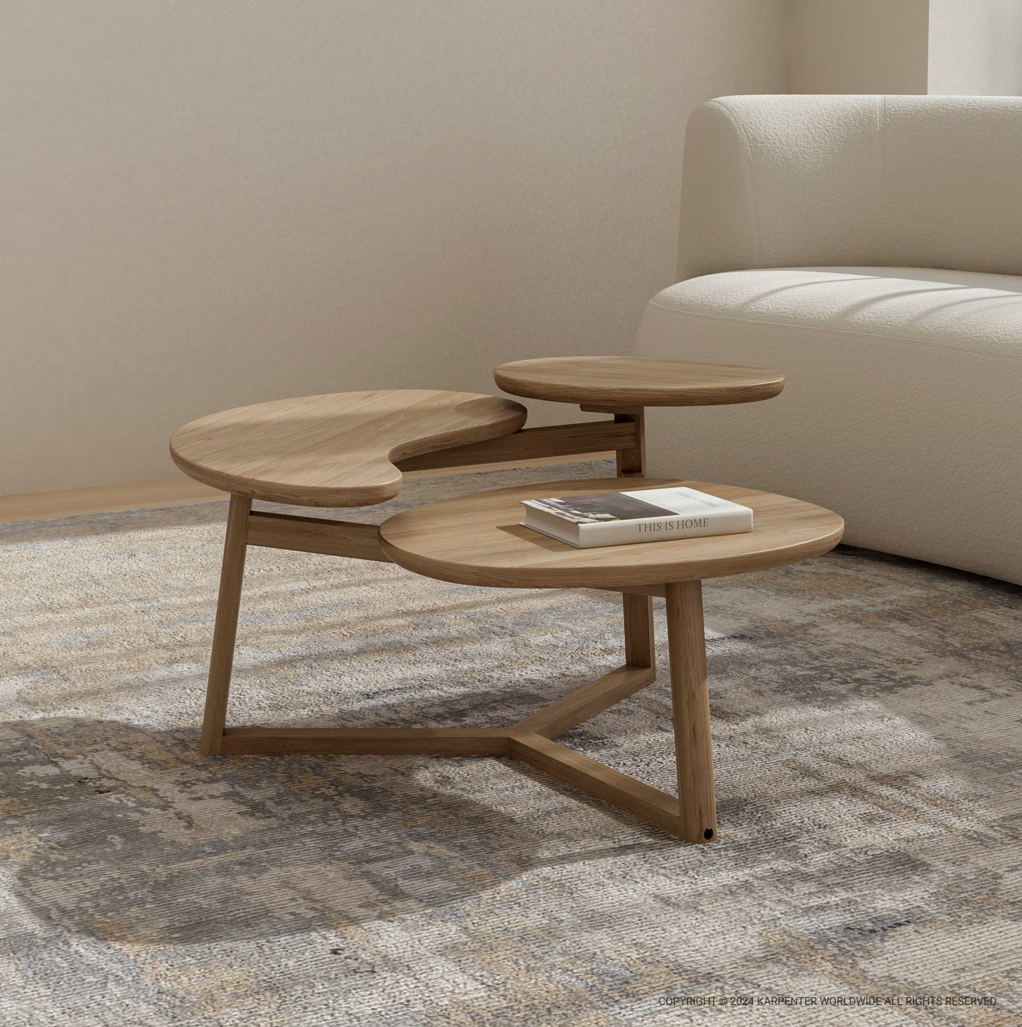 The Klippies Coffee Table features three distinct pebble-shaped sections that flow together in a beautiful sculptural arrangement. With its warm wood tones and smooth surfaces, this unique centerpiece adds natural character to any living space while maintaining balance and harmony. Its organic silhouette seamlessly complements contemporary, Scandinavian, and nature-inspired interiors.