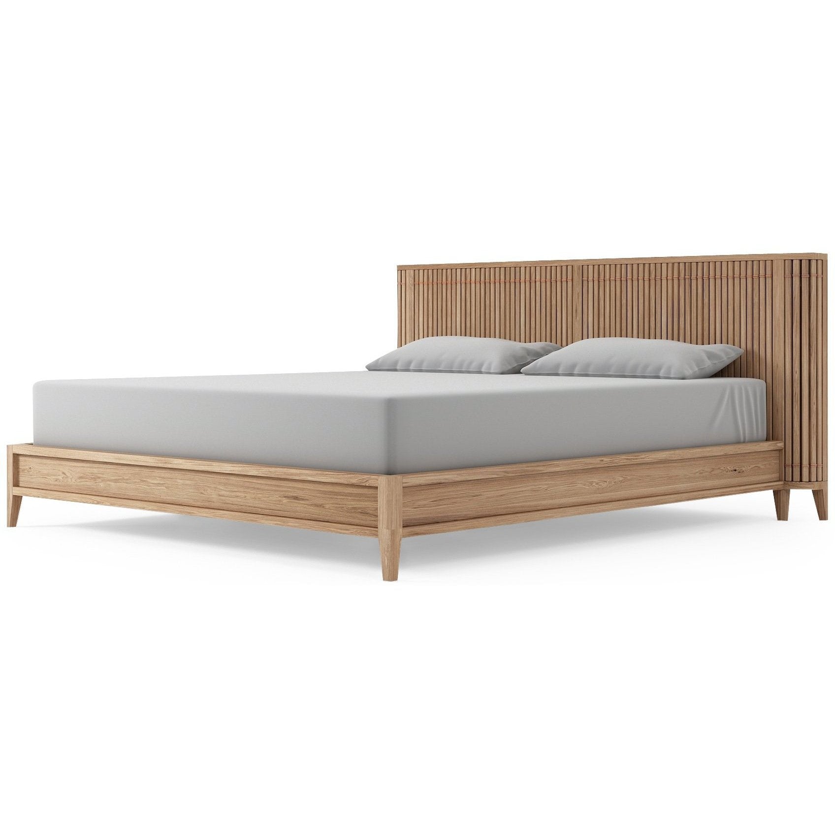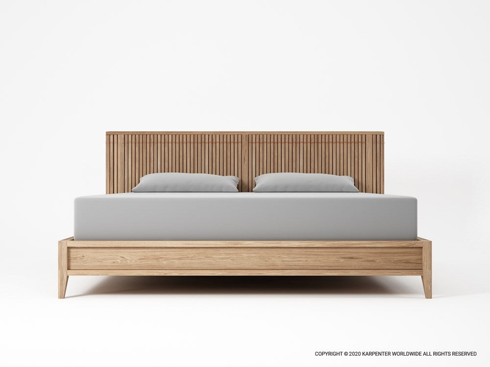 With its sleek, low-profile design, the Koppar Bed enhances your space with a sense of openness and tranquility. The elegantly slatted headboard adds depth and texture, creating a striking focal point that blends artistry with functionality.