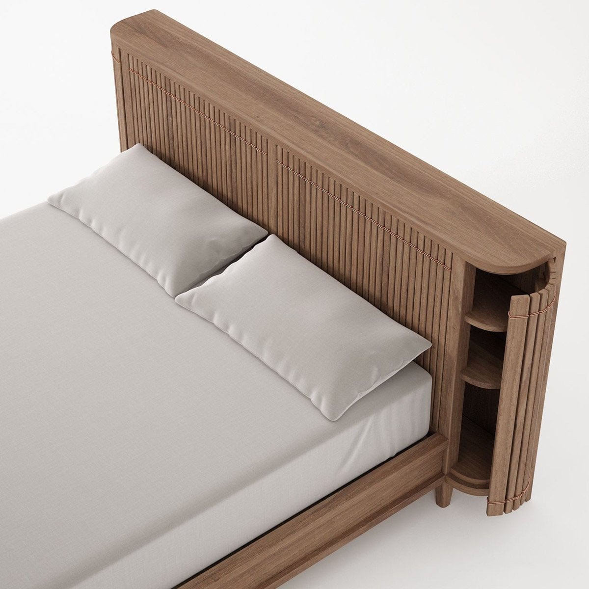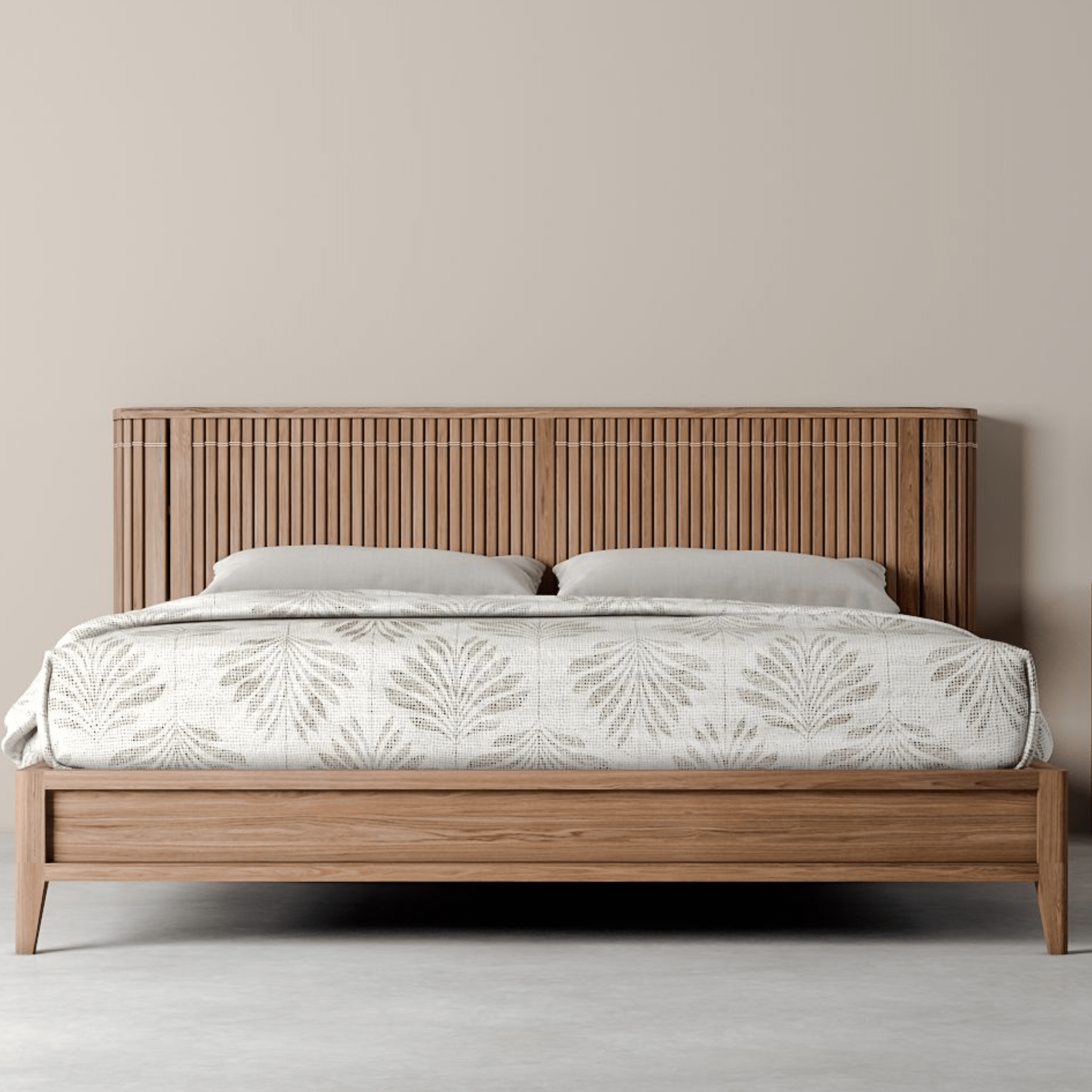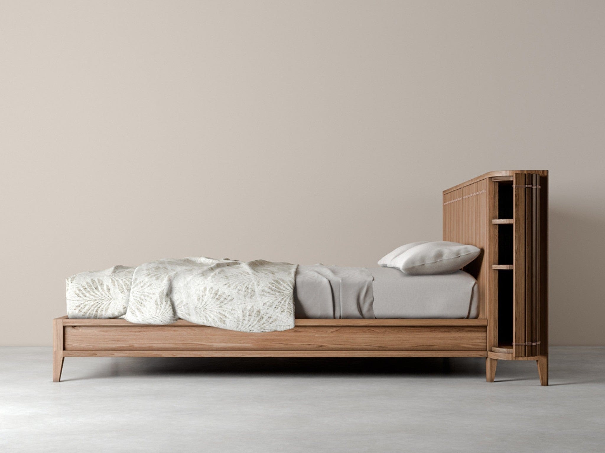 - Hidden storage in the headboard: Three deep shelves discreetly tucked behind the slatted design, ideal for storing quilts, pillows, and more. Also available without storage for those who prefer a simpler design.