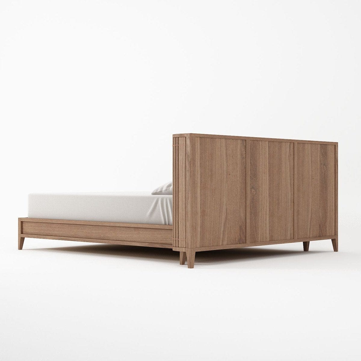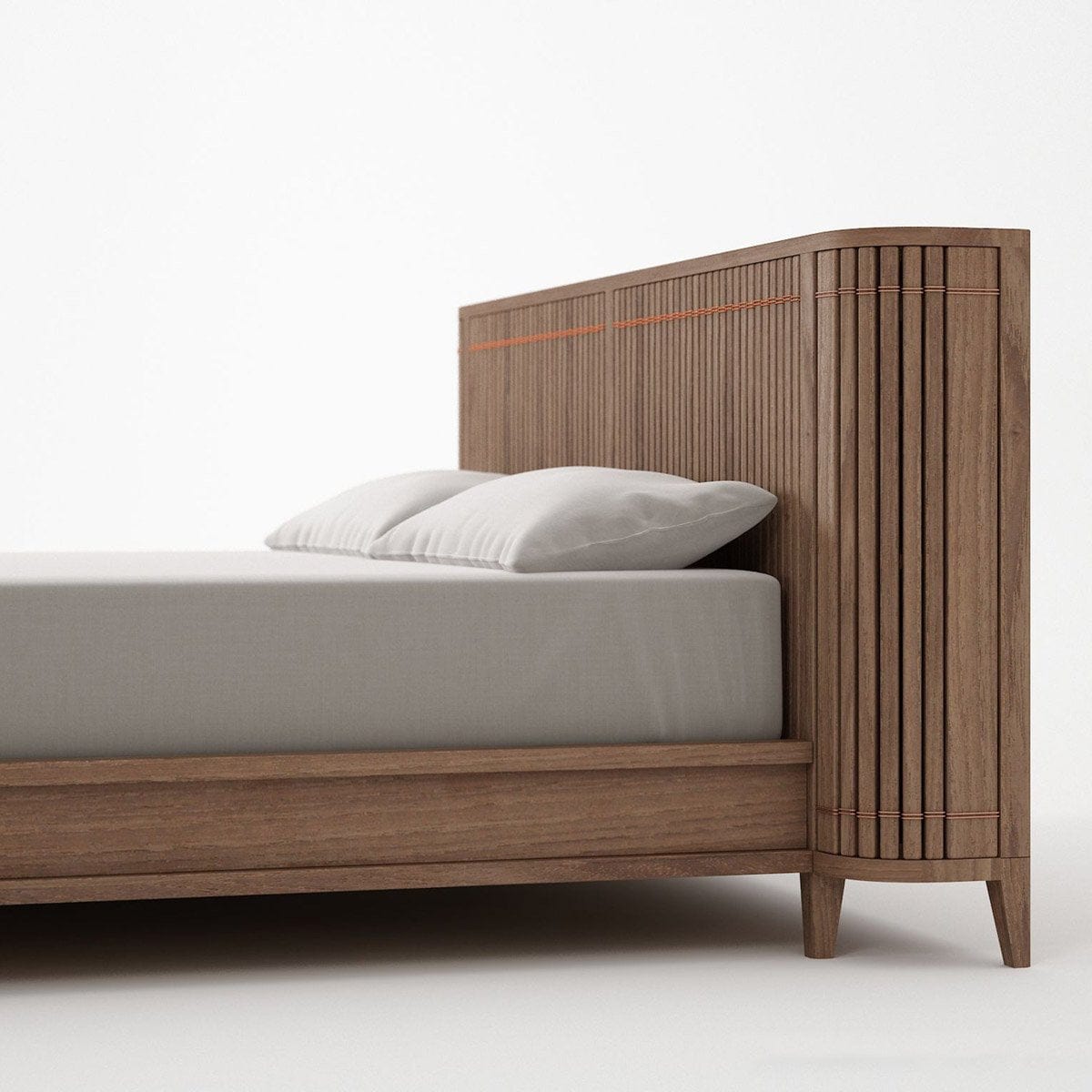 The Koppar King Bed from Karpenter is a stunning fusion of modern design and functional elegance, crafted from FSC Recycled Teak with elegant copper wire accents interwoven within the solid wood panels. Subtle yet impactful, the copper accents add a touch of sophistication and artistry to the design, making this bed a true statement piece. This timeless bed features smooth, curved lines that create a peaceful, inviting atmosphere, making it the perfect addition to any contemporary bedroom. The rich, warm tones of the teak bring an earthy, luxurious feel to the space, while the bed’s minimalist design ensures it complements various interior styles, from Scandinavian to modern industrial.