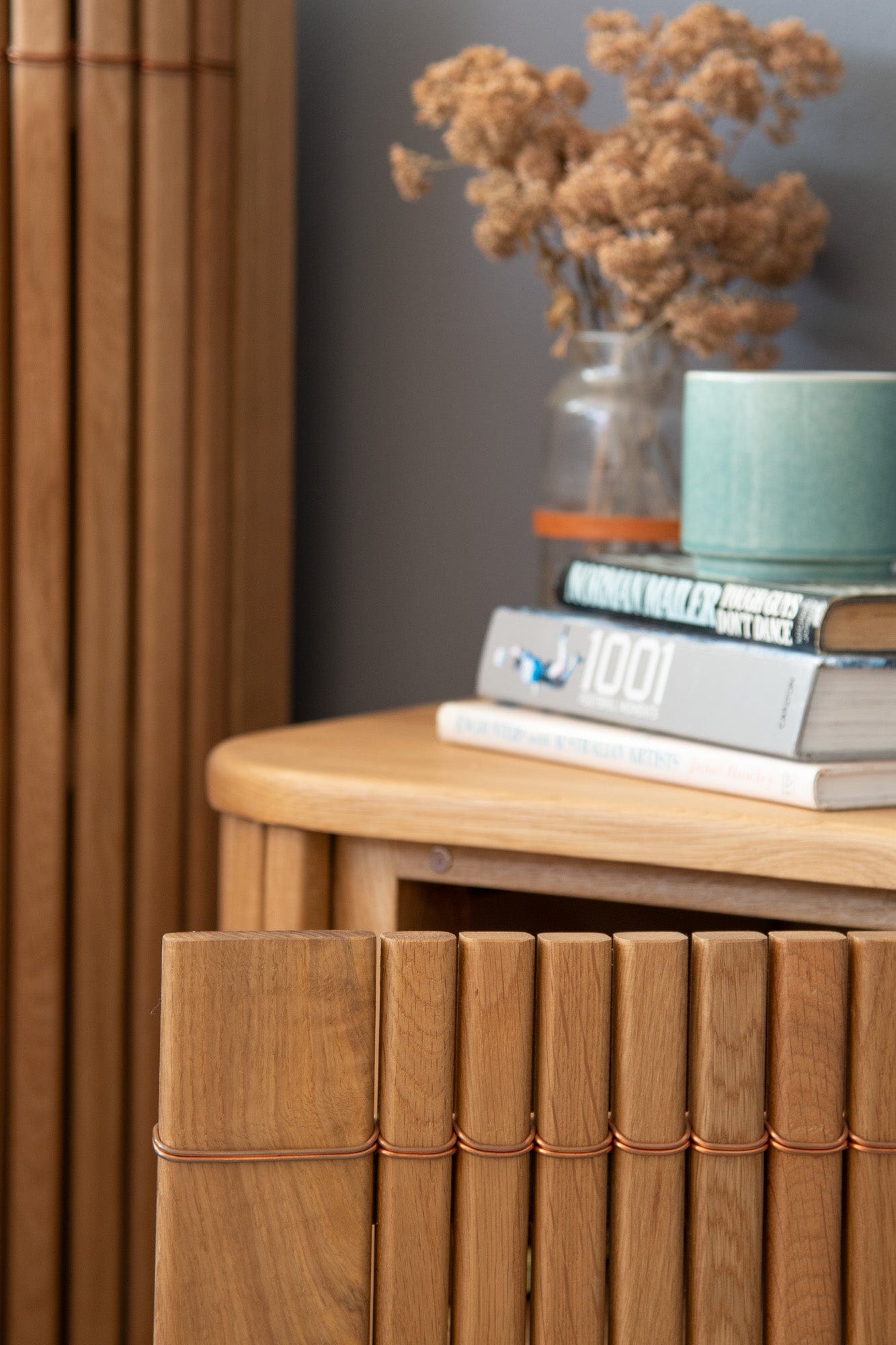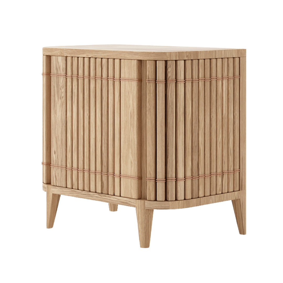 This handy piece of storage is made with solid European White Oak alluring, luxuriant and warm tone to the natural, solid, European White Oak used to create the piece. This gorgeous piece also comes in solid FSC Reclaimed Teak. Fitted with a single soft closing cupboard door this little cupboard has a removable shelf so larger pieces can be stowed away easily. The Koppar range is made even more stunning with the use of beautiful copper accents.