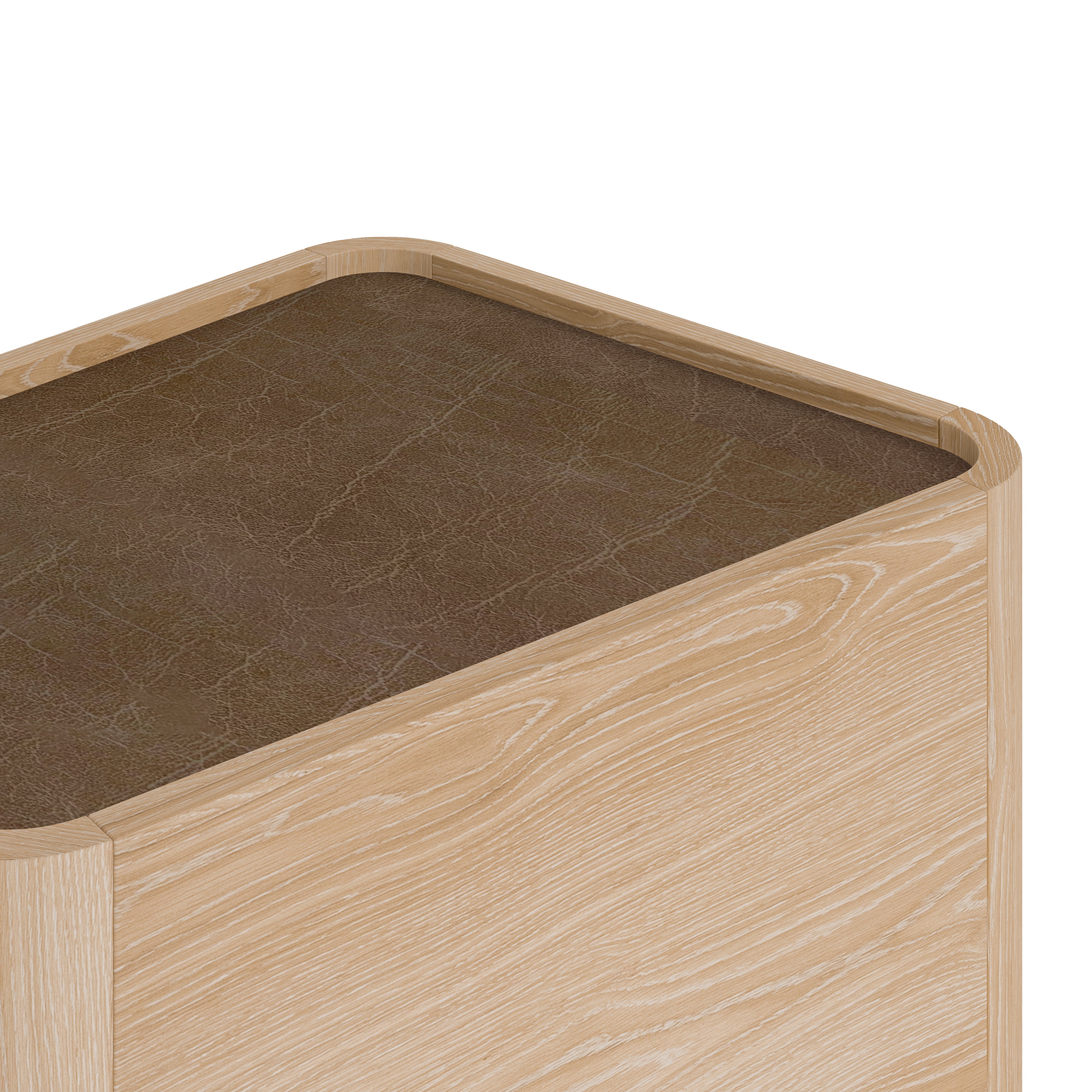 Expertly crafted from premium materials, the table showcases precise joinery and a smooth, durable finish that reflects its high-quality construction. The leather-finished top introduces a tactile layer of luxury, elevating the design while providing a resilient surface for daily use.