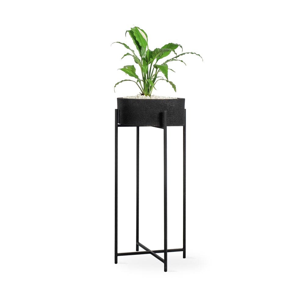 The Islava Plant Stand is made from carved Lava stone sourced from Mount Merapi in central Java, and a powdercoated steel frame in a dark metal colour finish. The Lava Stone has been sealed to hold water, but as Lava Stone is porous in nature, it is advisable to water sparingly as a precaution. It is a great planter for succulents, or drooping foliage.