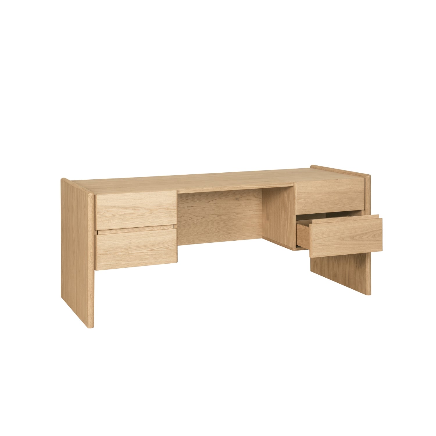 The Loleta Executive Desk is a refined centrepiece for modern offices and study spaces. Crafted from oak wood with oak crown veneer, its natural finish conveys warmth and authority.