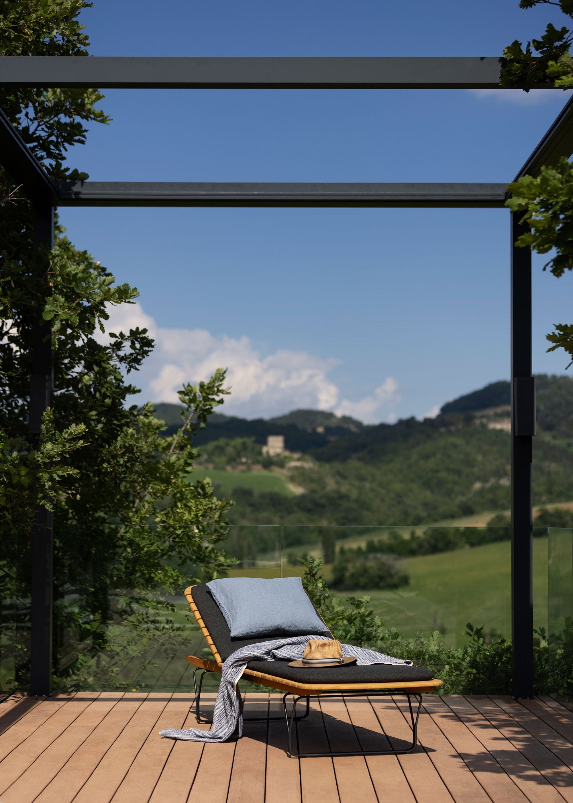 Molo Sunbed is made in bamboo lamellas with a decorative leg construction in powder-coated black metal. The surface and the softly rounded bamboo lamellas combined with the metal construction lead the thoughts towards a pier and the relaxed atmosphere by the sea.