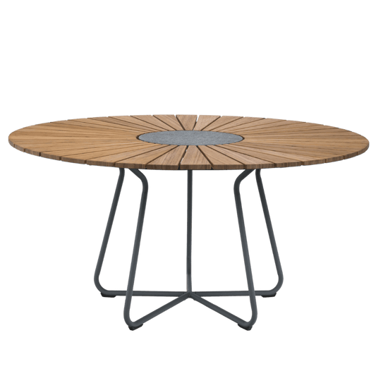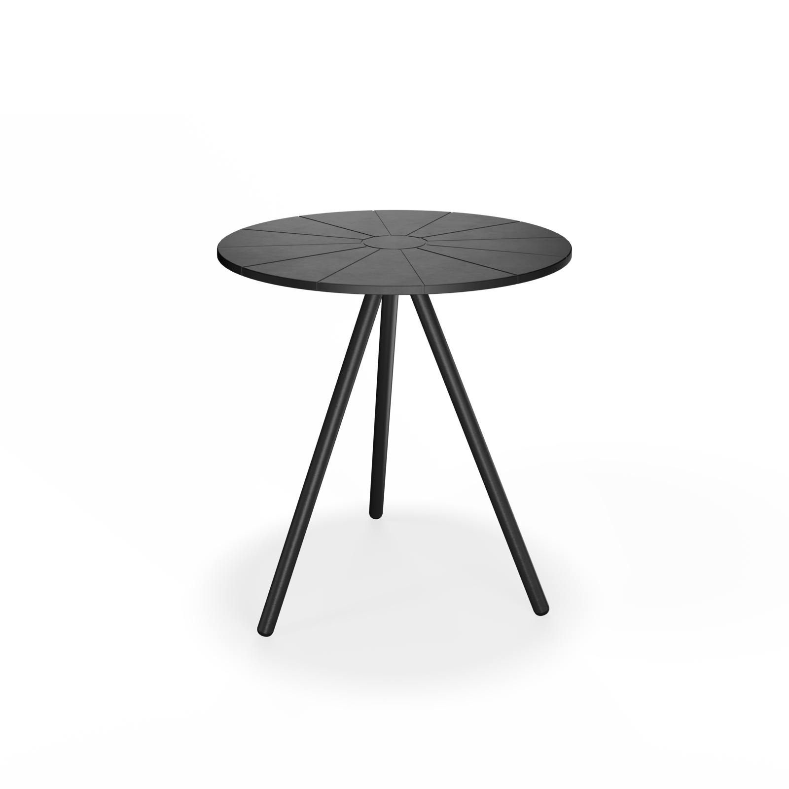 The elegant contours of the table's design evoke the image of a wave gently washing over the beach. Named NAMI, which means "wave," this sophisticated garden table embodies organic expression. Inspired by the forces and lines of nature, it seamlessly integrates into outdoor settings, thriving in wind and weather. NAMI consists of powder-coated steel frames with beautifully molded plastic tabletops. The plastic parts are made in Denmark from 97% Danish household plastic trash, with 3% color pigment added.