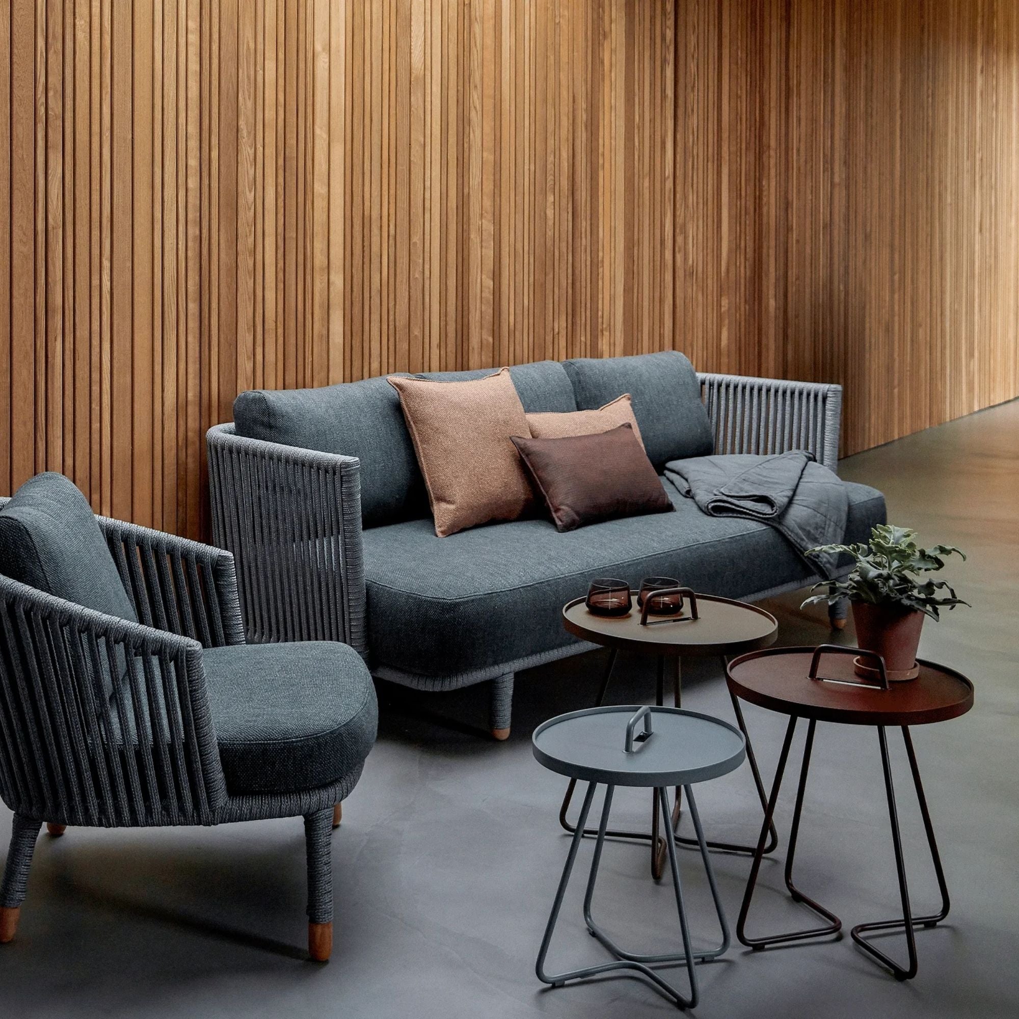 The On-the-Move Small Side Table by Cane-line is a lightweight and functional piece designed for modern outdoor living. With its clean lines, practical handle, and removable tray top, this versatile table moves effortlessly from balcony to garden to poolside—wherever you need it.