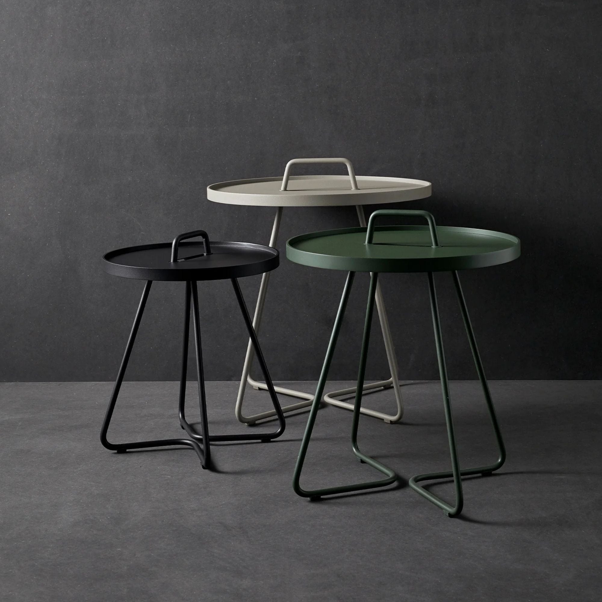 The On-the-Move Small Side Table by Cane-line is a lightweight and functional piece designed for modern outdoor living. With its clean lines, practical handle, and removable tray top, this versatile table moves effortlessly from balcony to garden to poolside—wherever you need it.