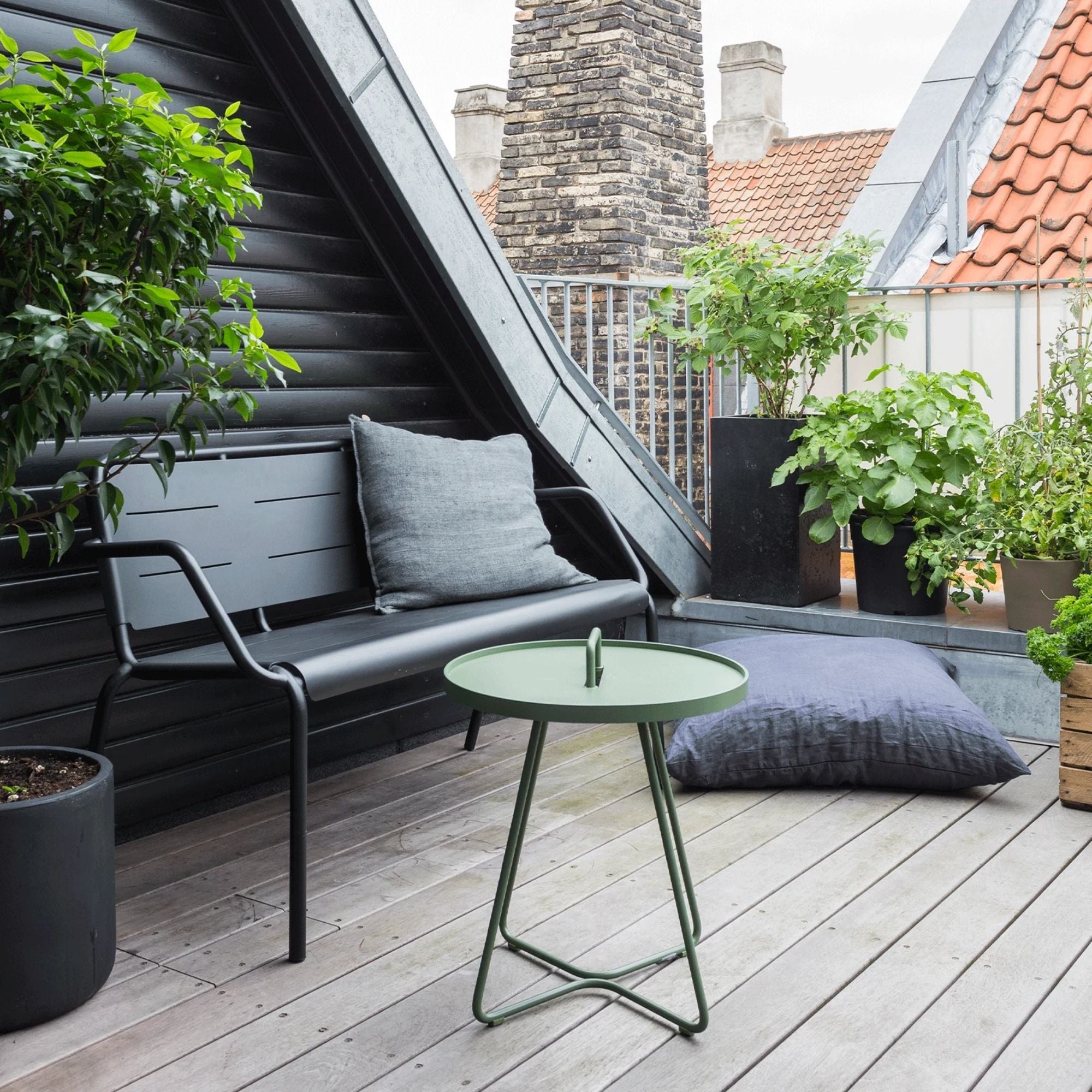 The On-the-Move Small Side Table by Cane-line is a lightweight and functional piece designed for modern outdoor living. With its clean lines, practical handle, and removable tray top, this versatile table moves effortlessly from balcony to garden to poolside—wherever you need it.