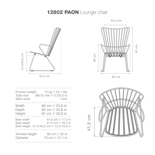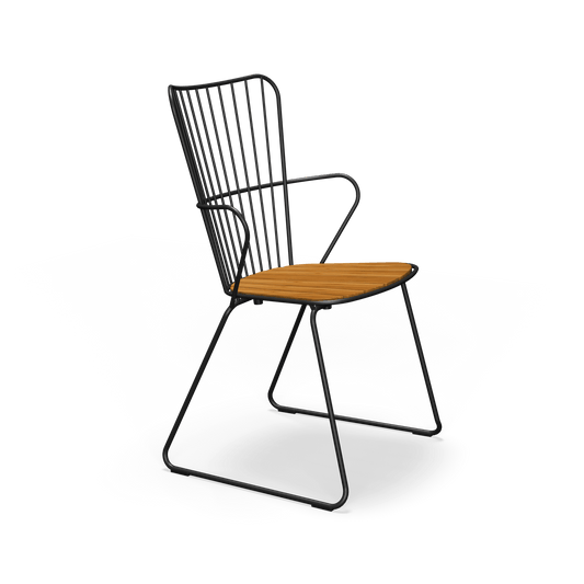 PAON is the French word for Peacock, and this bird worked as inspiration when designing the chairs in the Paon line - take a look at the back and you will notice Paon is light Scandinavian in its design but with a touch of French Victorian romance. It is made from powder coated steel in matt black finish with sustainable pre oiled bamboo laminate lamellas. It comes fully assembled and requires re oiling as required. We recommend Houe Outdoor Furniture Oil as it is pre tinted to colour match.