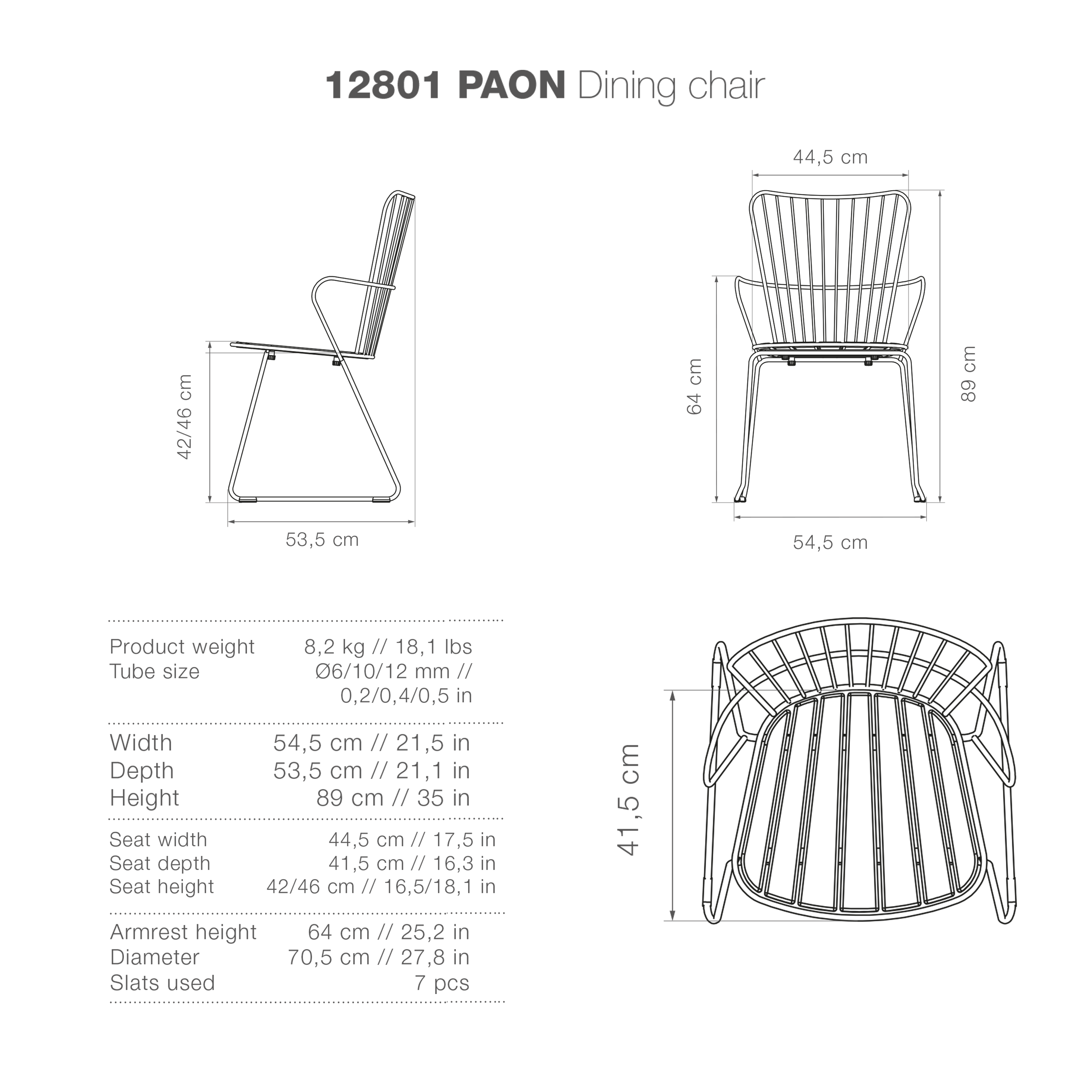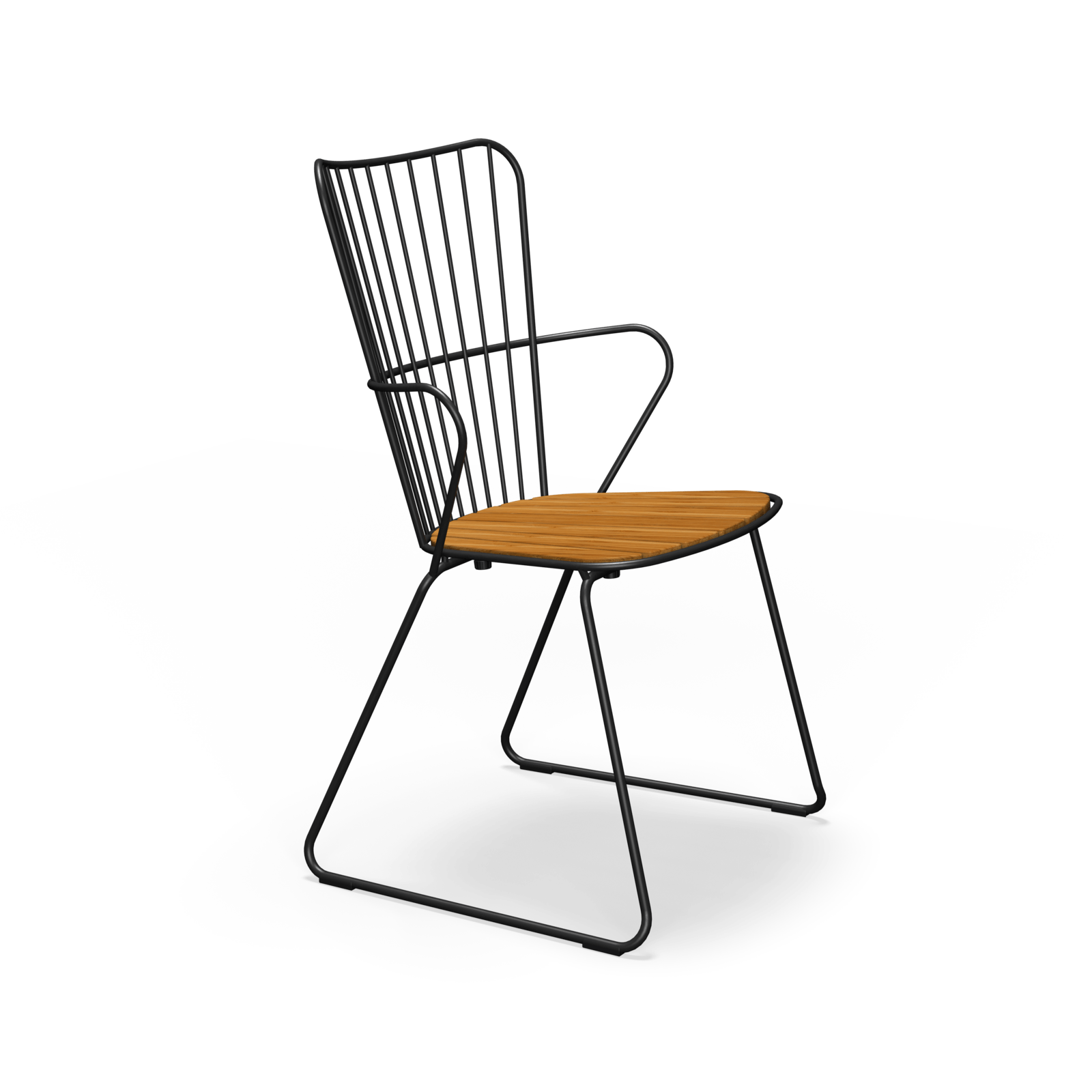 Paon is the French word for Peacock, and this bird worked as inspiration when designing the chairs in the Paon line - take a look at the back and you will notice Paon is light Scandinavian in its design but with a touch of French Victorian romance. It is made from powder coated steel in matt black finish with sustainable pre oiled bamboo laminate lamellas. It comes fully assembled and requires re oiling as required. We recommend Houe Outdoor Furniture Oil as it is pre tinted to colour match.