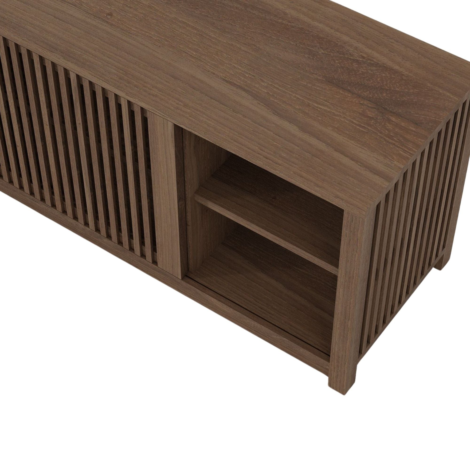 - Design: The slatted doors and open shelving provide a modern yet rustic aesthetic, offering both concealed and open storage options to keep your space organized.