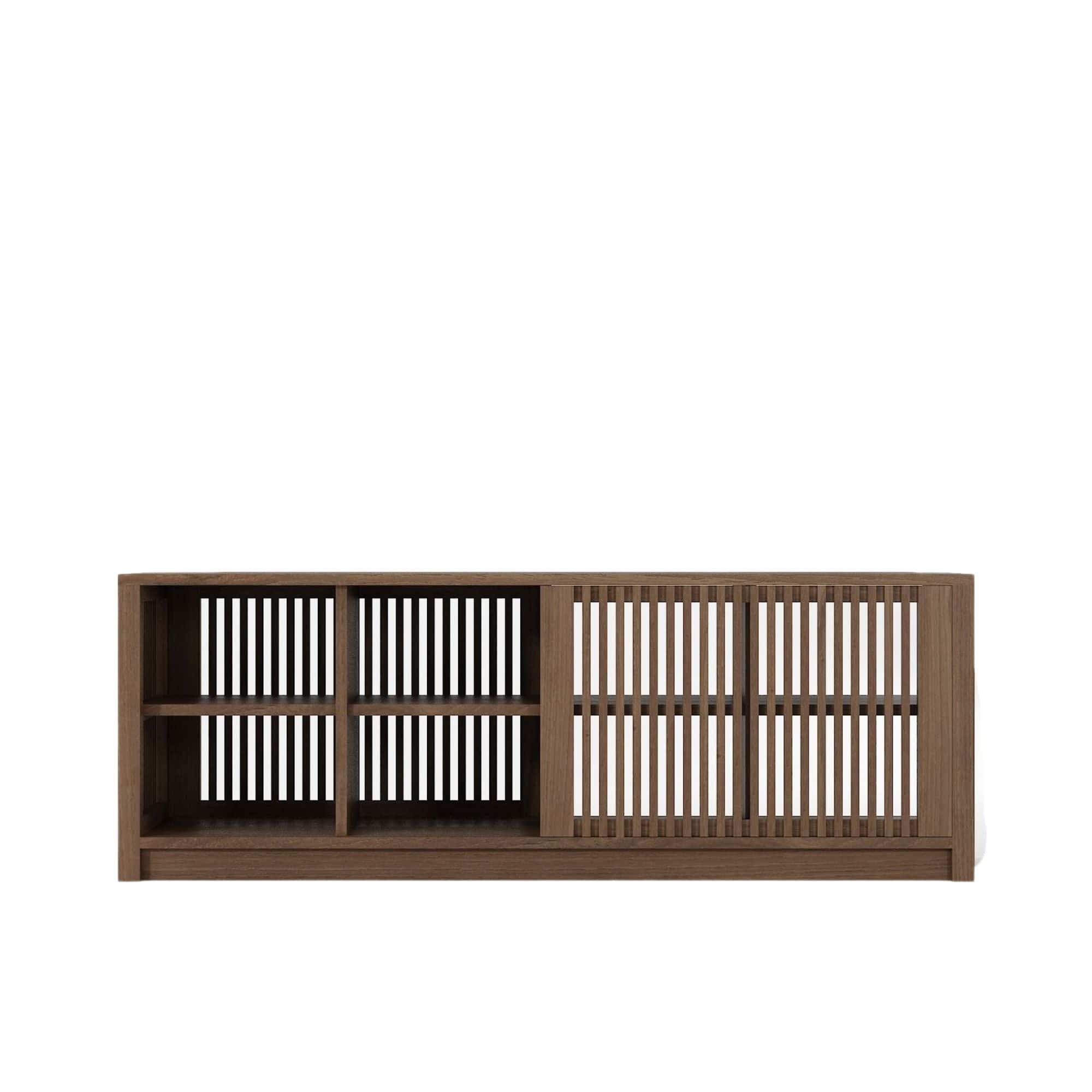 Our elegant wooden sideboard is inspired by the harmonious balance of form and function found in nature. Crafted from rich, durable FSC teak, this sideboard combines sleek lines with practical storage solutions. The design draws inspiration from the tranquil and sturdy presence of forest landscapes, aiming to bring a touch of tranquility into your home, made for light beams to pass through serenely. With its versatile style, this piece fits seamlessly into any living room, dining area, or hallway, adding a sophisticated touch to your decor.