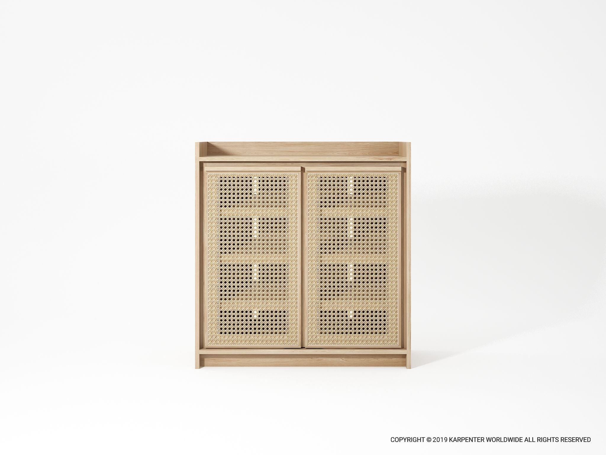 Made from ethically sourced solid European timber and locally sourced natural rattan from Indonesia, the Roots range is designed for functionality and simplicity for today's environment. The sleek simple detail of the oak frame combined with woven rattan doors allows good air circulation for storage with two large open compartments. It can be used in the bedroom, living room, office or that nook that offers vital extra storage. It's compact enough to fit just about anywhere, but provide essential storage for today's world. Made from Solid European Oak and natural Rattan No chipboard or veneers. Two open compartments with soft-close doors Sleek simple contemporary design.