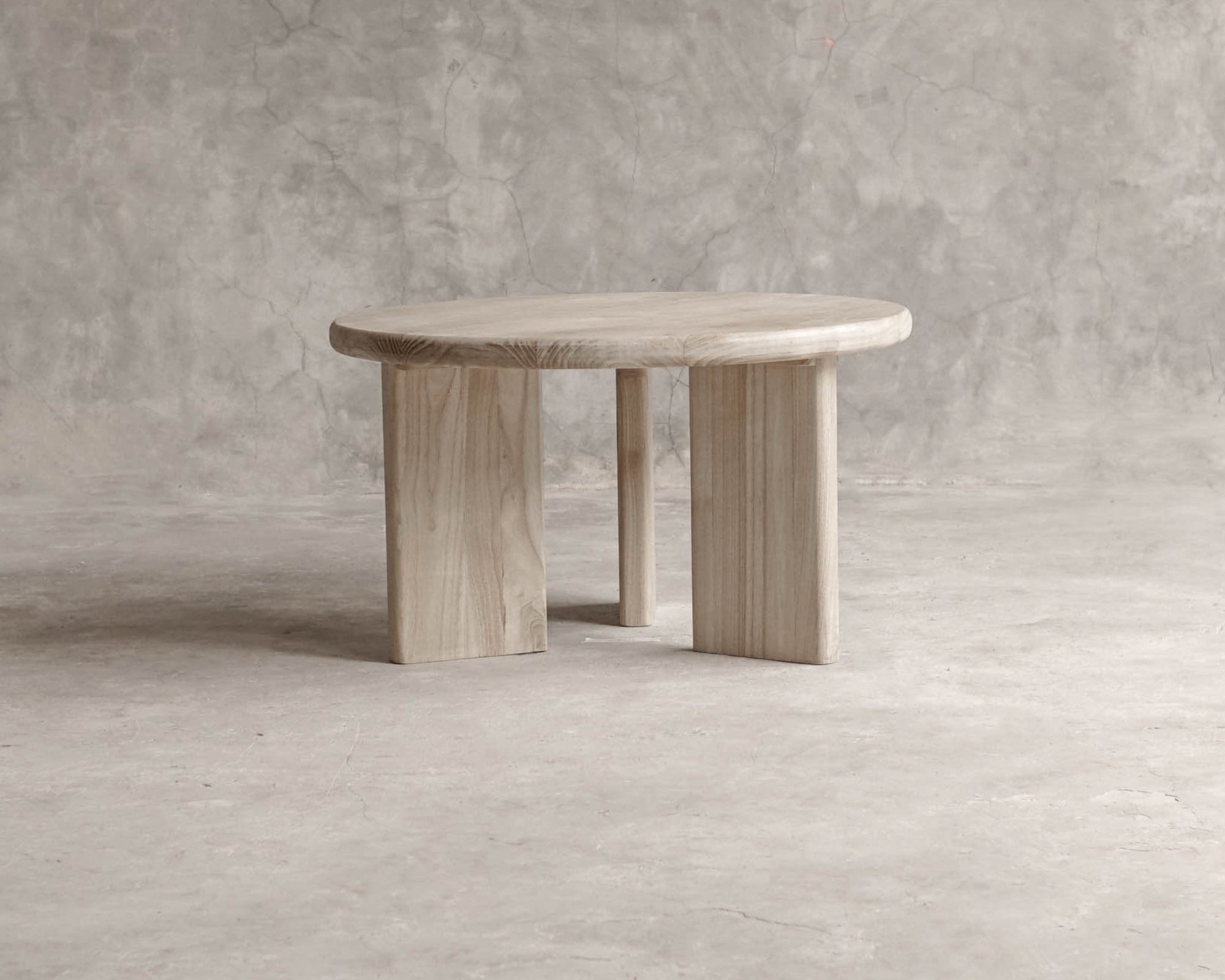 - Design: This table features a round tabletop supported by a three-leg base, creating a simple and clean-lined design that exudes modern minimalism. The neutral blonde tones of the wood lend the piece a soft, airy feel, making it particularly suitable for smaller spaces where a lighter color palette can help create the illusion of more space.