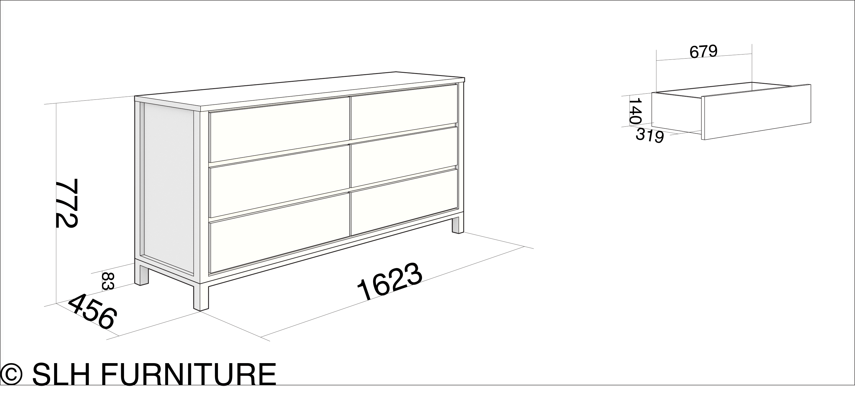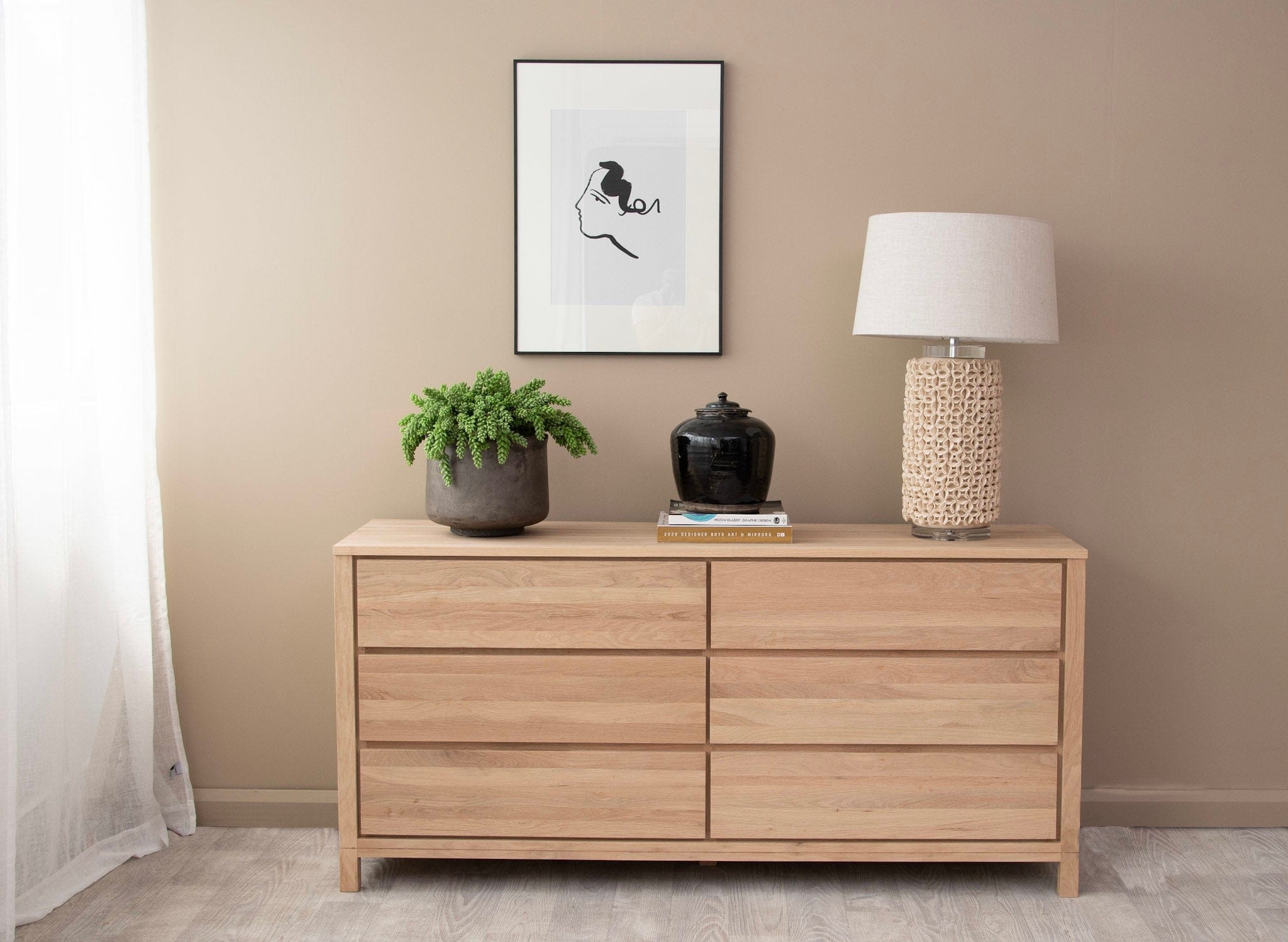 Luxurious and elegant, the Solid chest of drawers has 6 that are soft-closing that will enable its owner's wealth of choice to hide their secrets. Whether placed in a bedroom or used as a handy sideboard, this Karpenter bureau will add versatility to any home. Made from European White Oak, and is a must for anyone that loves the richness and texture of solid wood but the benefit of storage.