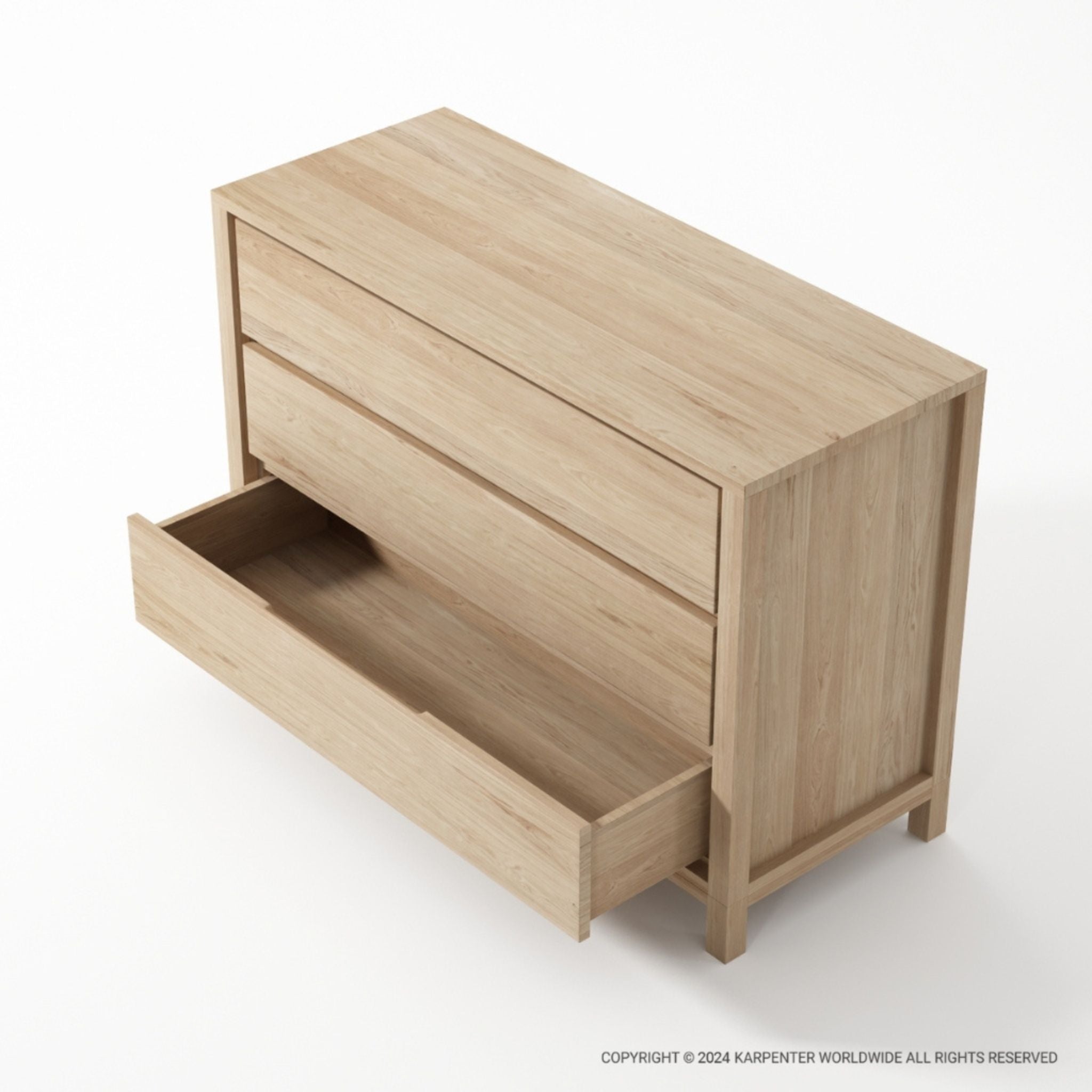 Luxurious and elegant, the Solid chest of drawers has 3 that are soft-closing and will enable its owner the ability to hide their secrets in a beautiful and stylish piece. Whether placed in a bedroom or used as a handy sideboard, this Karpenter bureau will add versatility to any home. Made from European White Oak, it is a must for anyone that loves the richness of solid wood with the benefit of storage. It also comes in other colours which can allow you the choice as to how this beautiful storage piece will fit with your current decor.