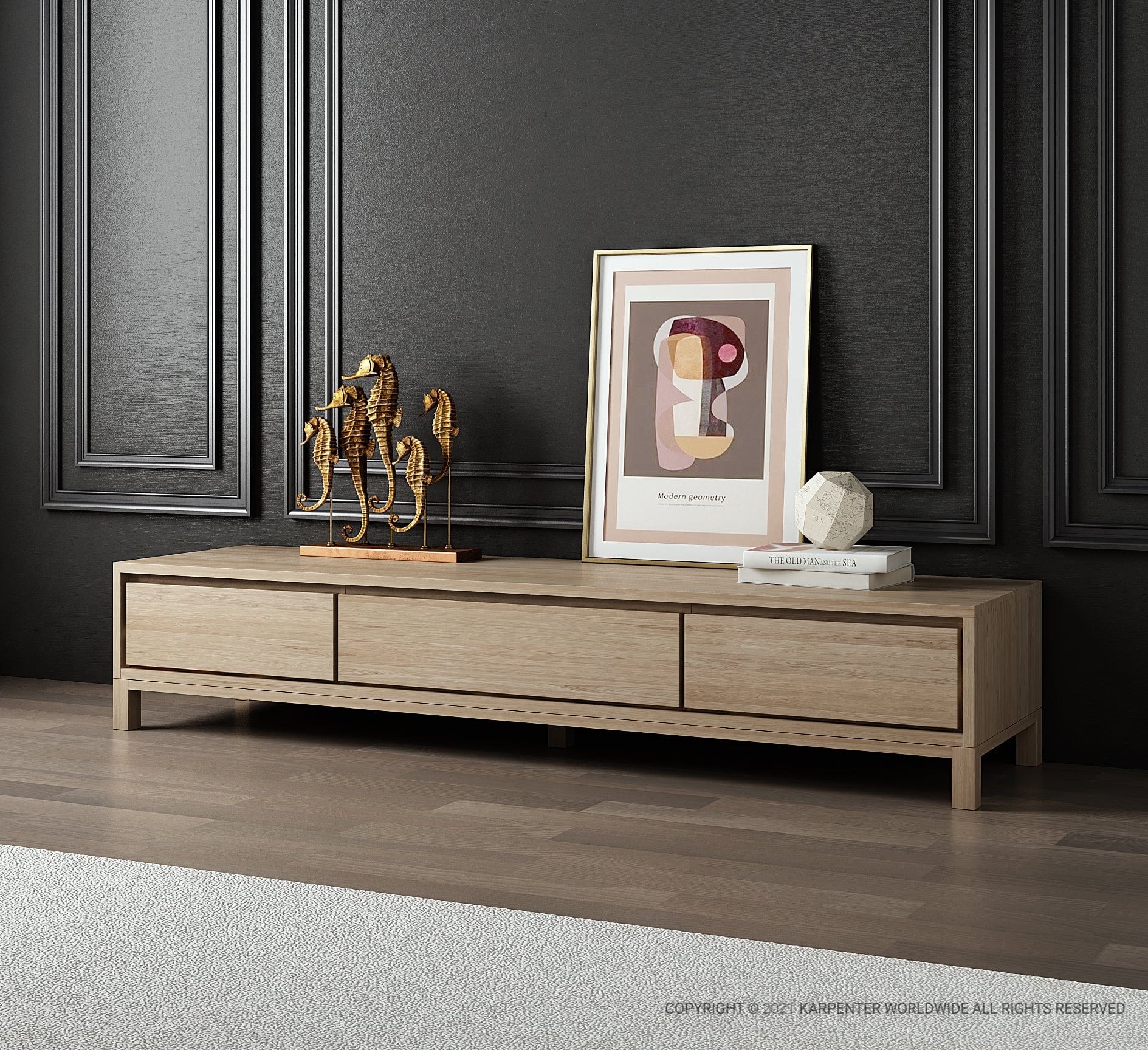 With fine lines and clean angles, the Solid TV Unit from Karpenter range comes with two soft-closing drawers and a cunning fold-out flap, which make it both a practical and elegant piece. This beautiful low lying TV Unit is a wonderful focus piece whilst you sit in your lounge and watch your favourite shows. Made from Solid European White Oak this beautiful piece also comes in other colours so you can choose which colour best suits your existing decor.