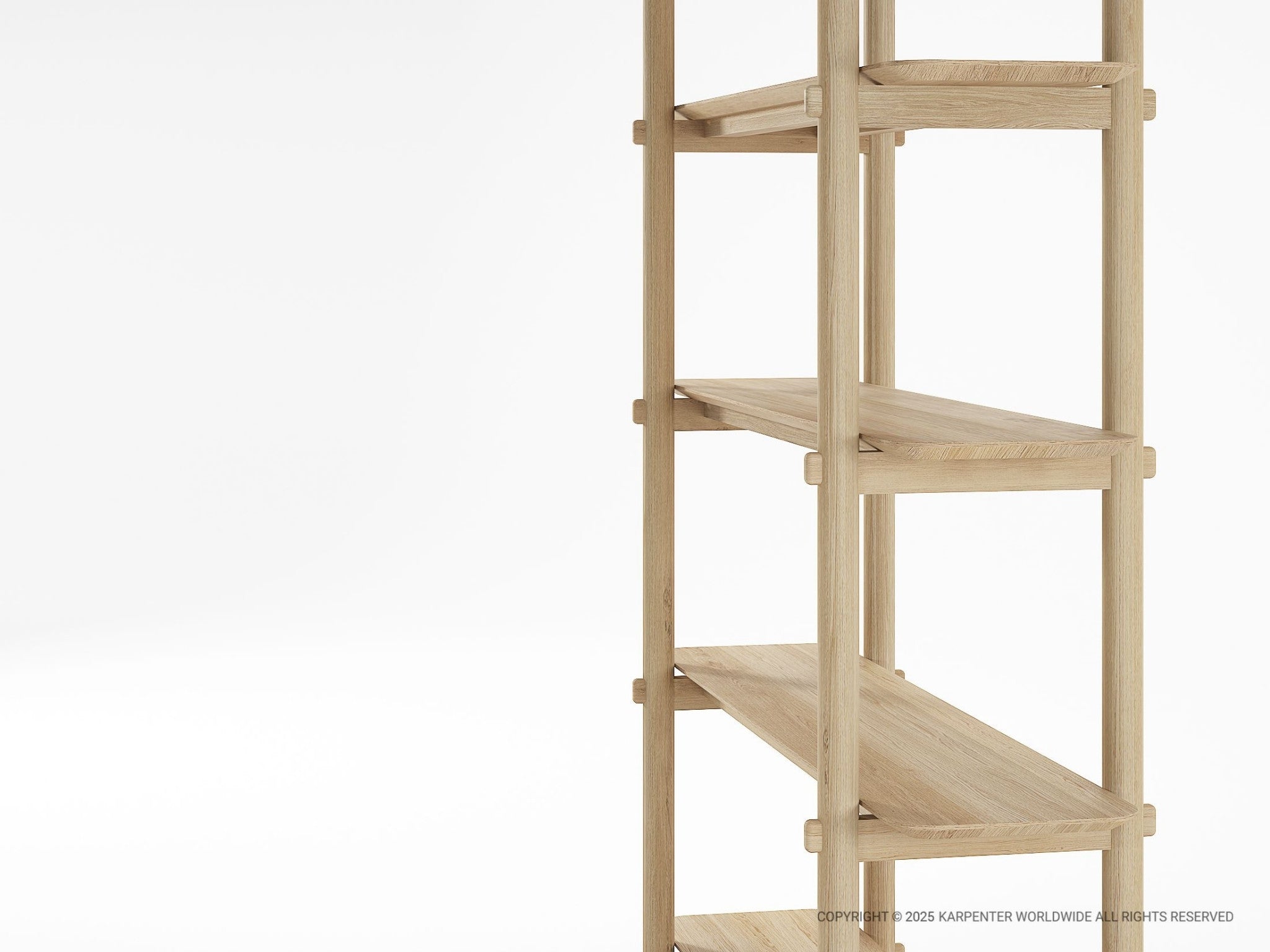 Refined and versatile, the Tenon Bookcase 120cm in European Oak is crafted from sustainably sourced solid oak. Its blonde tones and clean lines bring natural warmth, while the 120cm height offers generous display space.