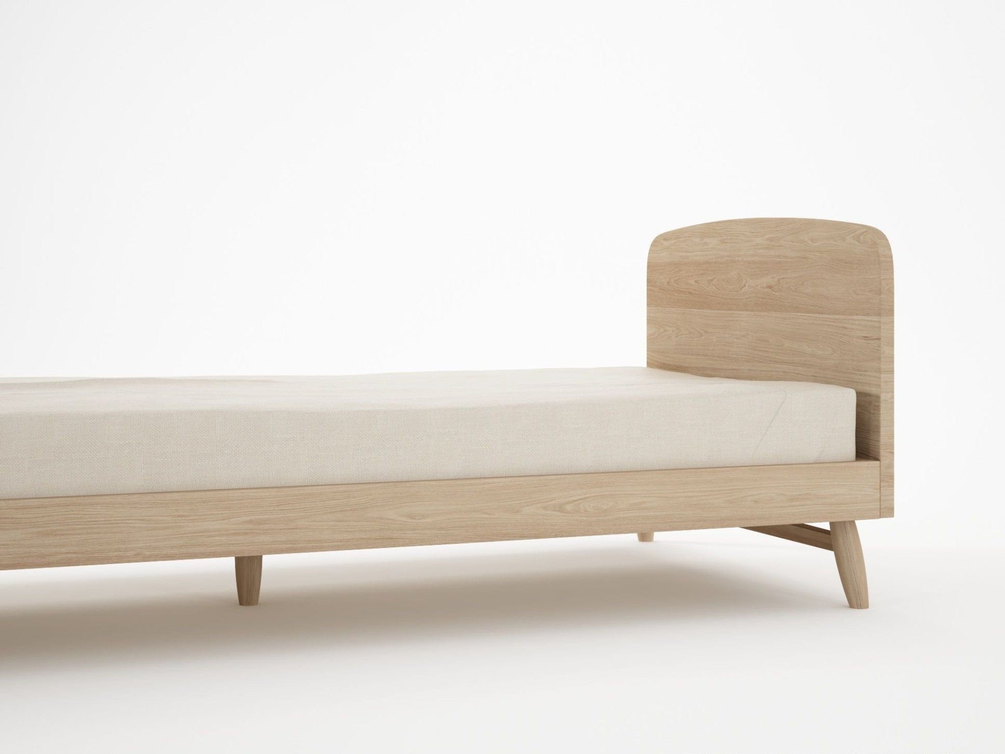 Elevate your bedroom with the Karpenter Twist Single Bed, crafted from premium European Oak timber, known for its blonde hues and tight grain. This contemporary bed features a low-profile design with soft, rounded edges and tapered legs, creating a light and airy atmosphere in any room. The matching Twist bedsides enhance the overall elegance, offering a sophisticated and refined touch to your space.