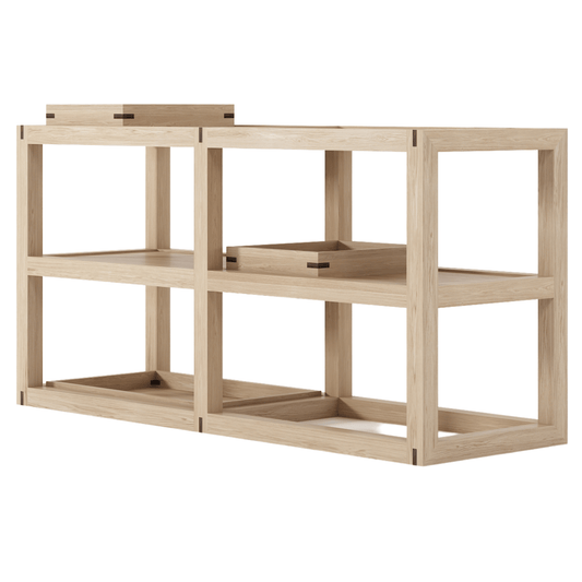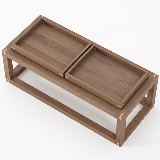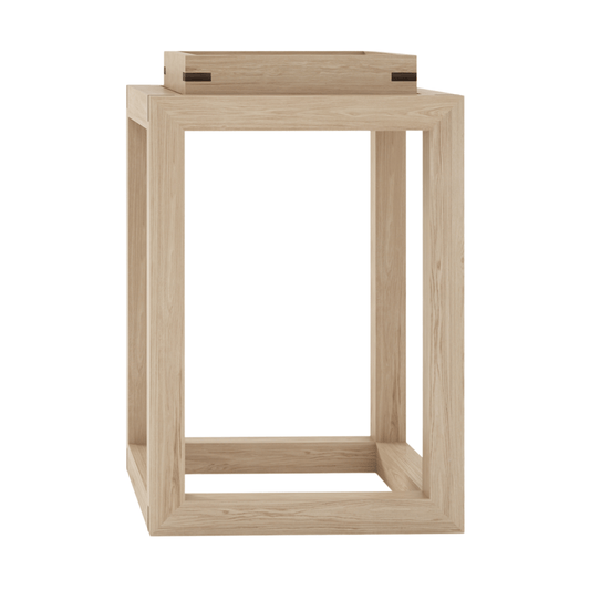 The UP & DOWN coffee table with one tray made of oak timber for indoor use is a piece of furniture that is typically used in living rooms or other indoor spaces. The table is made of oak wood, which is a durable and strong material that is known for its natural resistance to rot and decay, features an oak detailing on the corners and is finished with a water based finish. The tray feature is a removable top surface, which can be used for serving drinks or food, holding magazines or books, or as a decorative piece. The oak wood finish gives a natural and elegant look to the table and it can be paired with other oak wood furniture to create a cohesive look in a room.