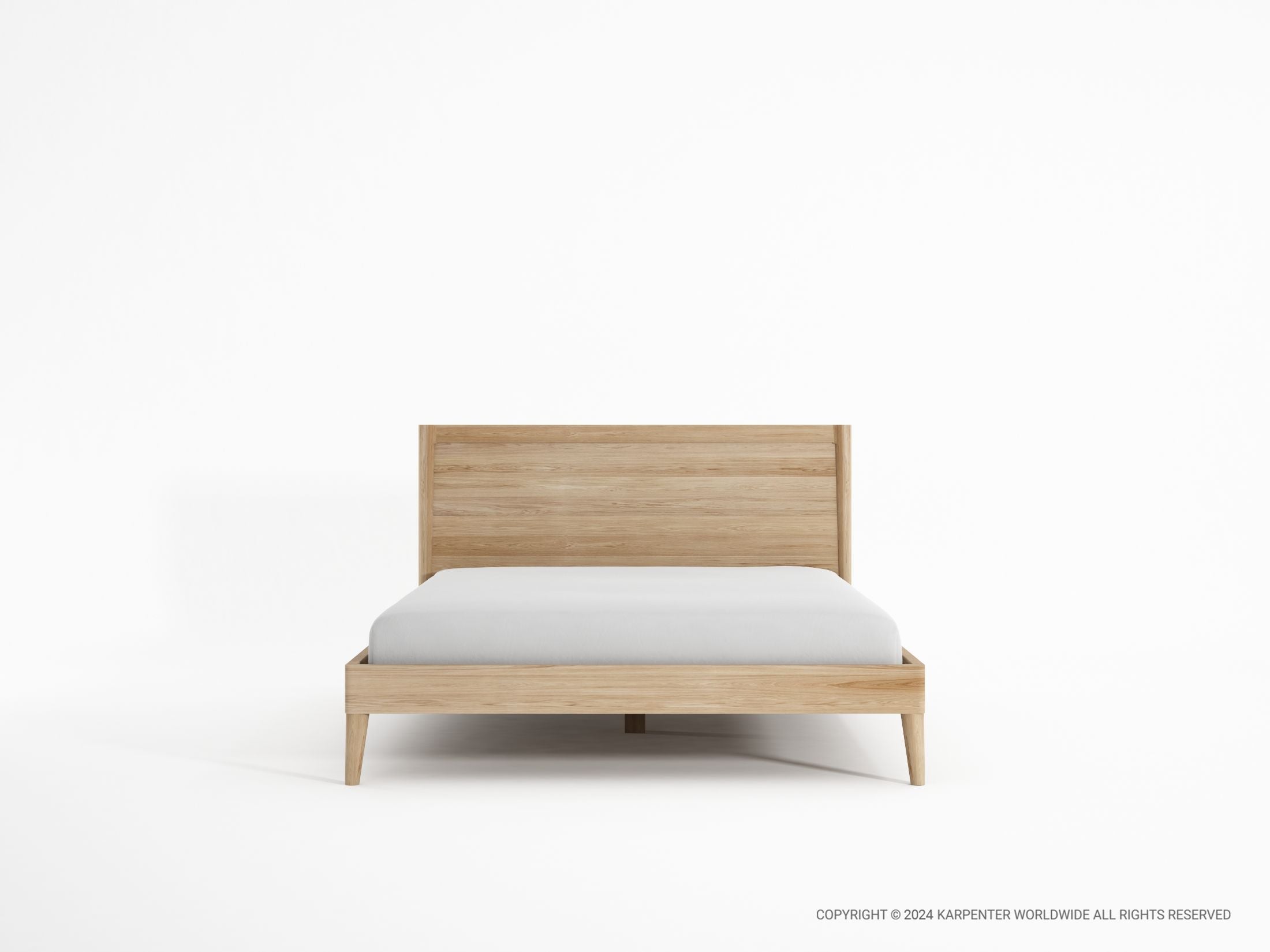 The Karpenter Vintage Double Bed is crafted from sustainably sourced, solid European Oak. Known for its blonde tones and tight, refined grain, this premium wood brings a touch of natural elegance and timeless appeal to any space. The bed’s contemporary low-profile design features rounded tapered legs and a floating backboard panel, evoking the mid-century modern style while seamlessly integrating into modern and contemporary interiors.